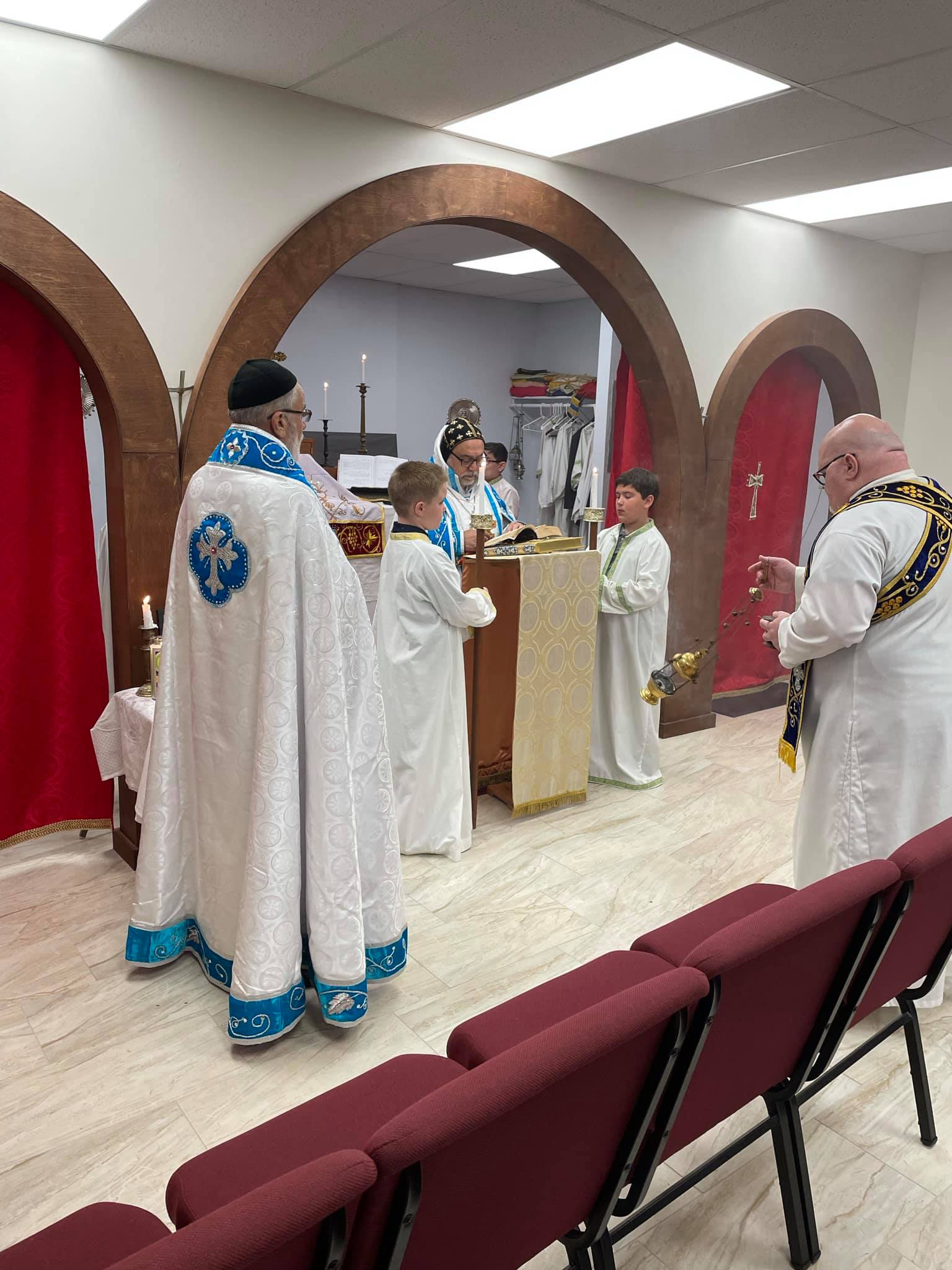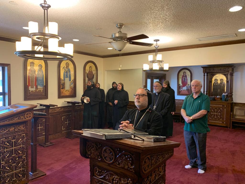 On Saturday, September 25th, and Sunday, September 26th, 2021, His Eminence Mor Dionysius John Kawak paid a pastoral visit accompanied by Very Rev. Fr. Joseph Shabo, the Parish Priest of St. James of Nisibin in Corpus Christi, Texas. On Saturday His Eminence visited the Coptic Monastery of St. Mary and St. Moses Abbey where he met with the Monks of the blessed monastery. On Sunday, Archbishop Kawak celebrated the Holy Qurobo assisted by Khouroyo Joseph Shabo. In his sermon His Eminence thanked Abuna Khouroyo Joseph Shabo for his service and encouraged all the faithful to maintain our faith and traditions and spoke about the Gospel passage of that day.