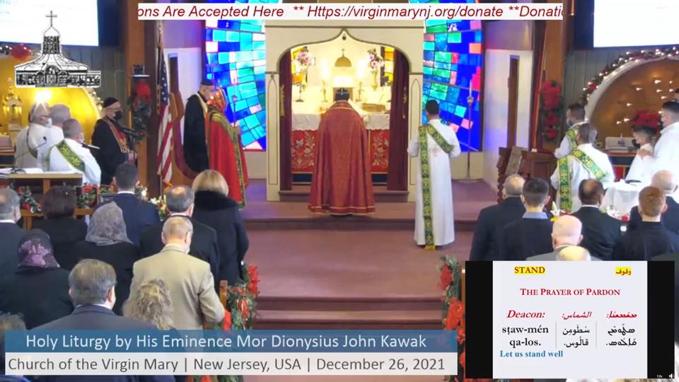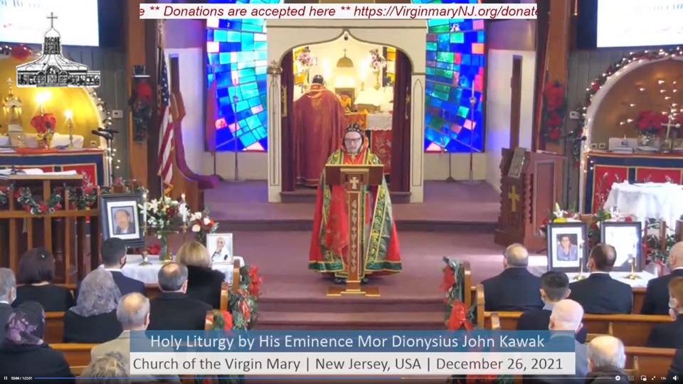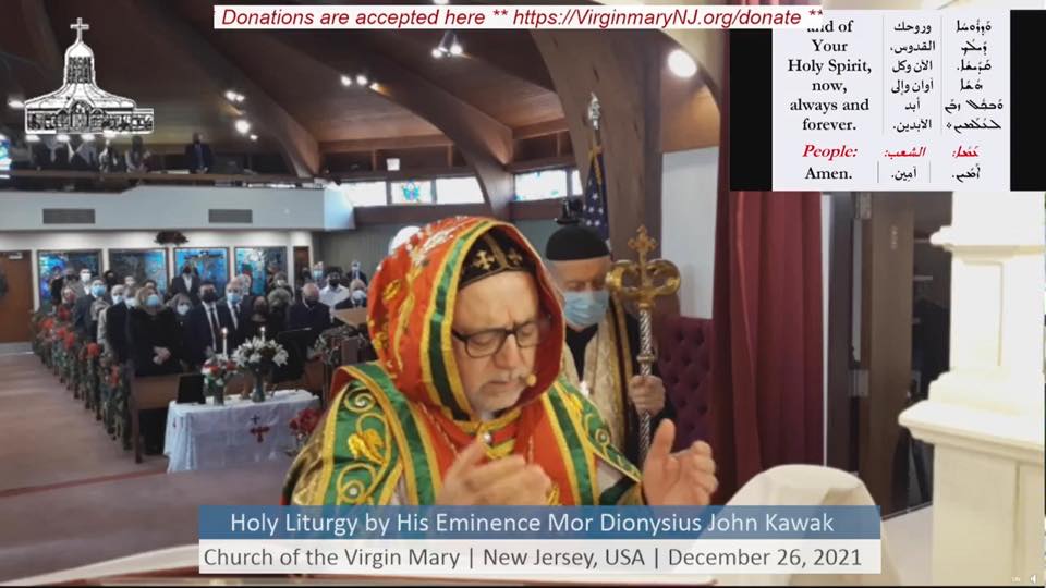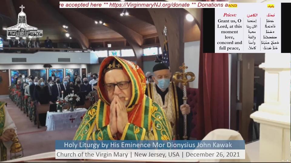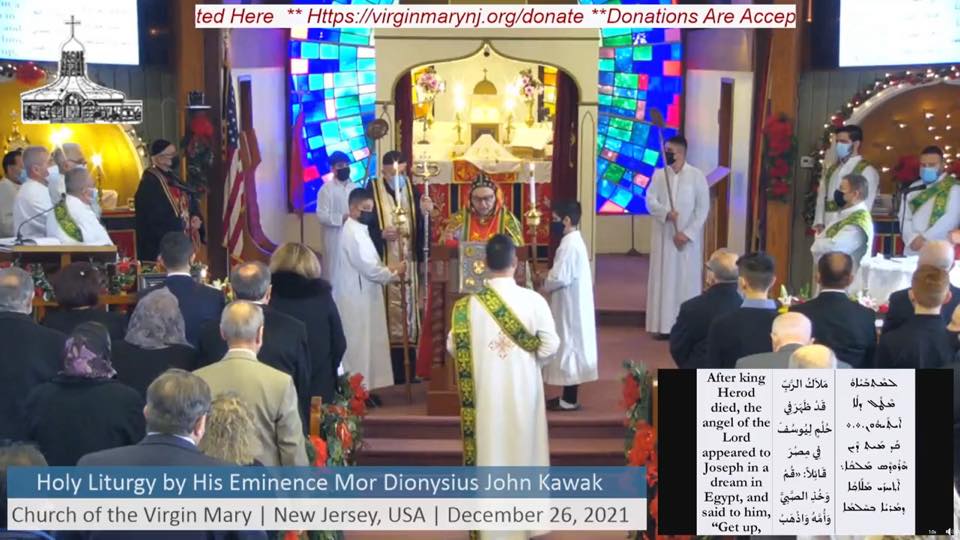 Christmas day on Saturday, December 25, 2021, Holy Liturgy was celebrated by His Eminence Mor Dionysius John Kawak at St. Mark’s Cathedral, assisted by Very Rev. Fr. Joseph Chamoun and Rev. Fr. Gabriel Alkass. Archbishop Kawak spoke about how our hearts are like the Inn, and how we must give our Lord Jesus Christ the biggest room at the Inn of our hearts. On Sunday, December 26, 2021, His Eminence Mor Dionysius John Kawak celebrated the Holy Liturgy assisted by Very Rev. Fr. Andrew Bahhi at Church of the Virgin Mary in Paramus, NJ in the presence of Very Rev. Fr. John Khoury and Very Rev. Fr. Joseph Shabo. In his sermon His Eminence spoke about the real meaning of Christmas and how we can summarize Christmas in one word which is “Love.”