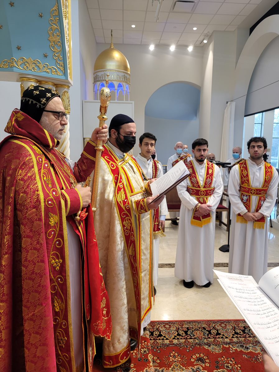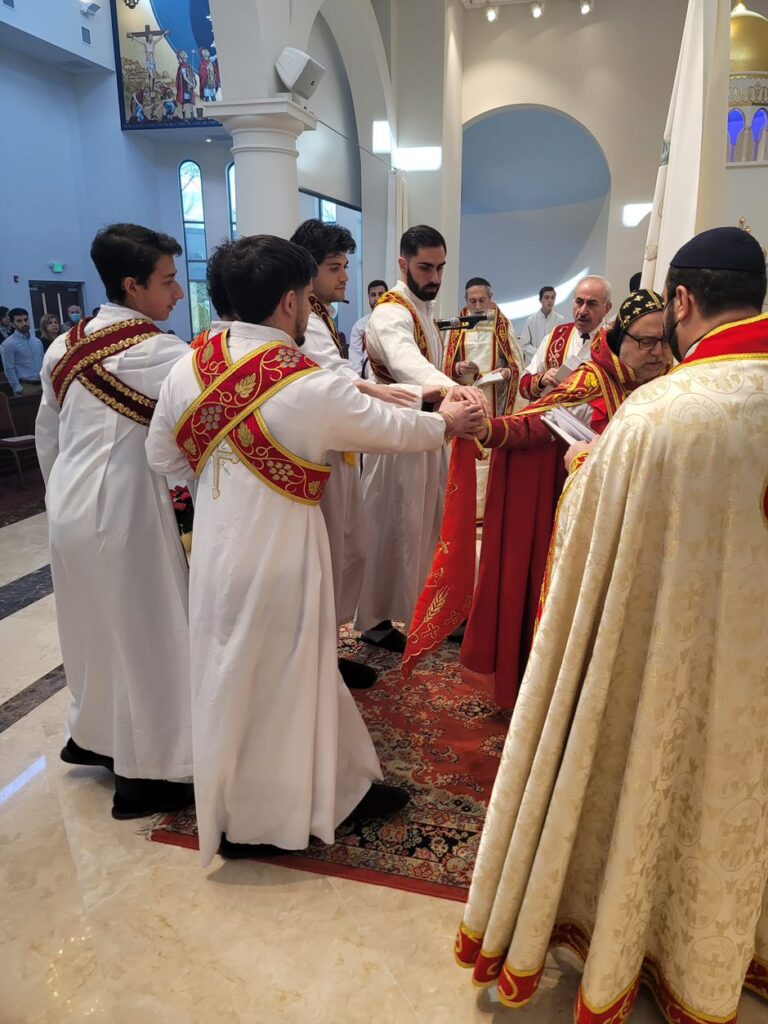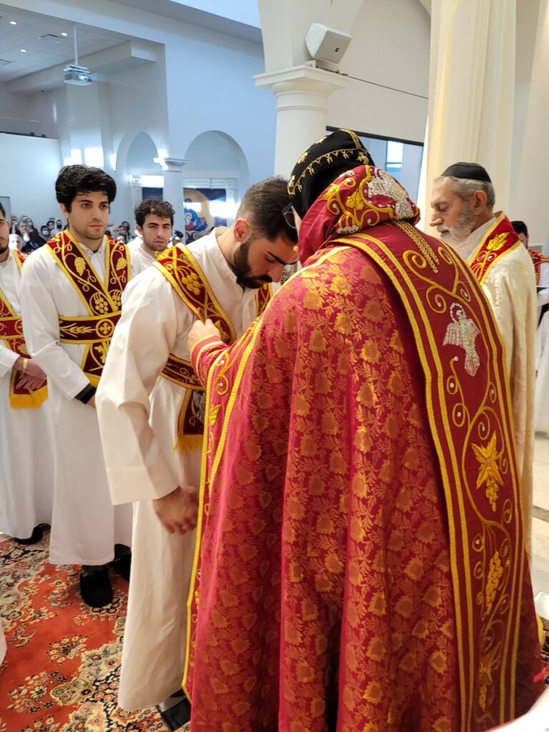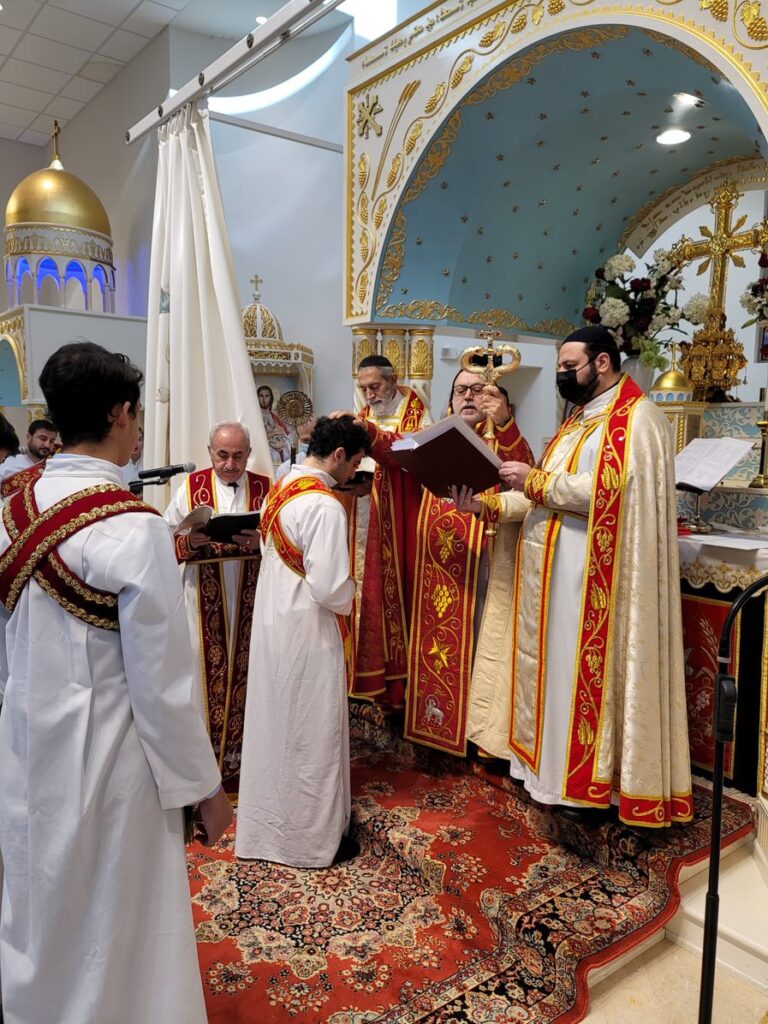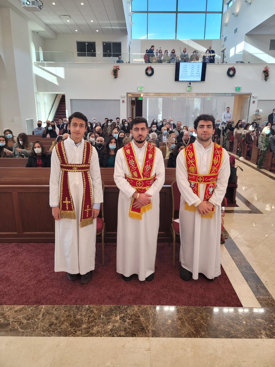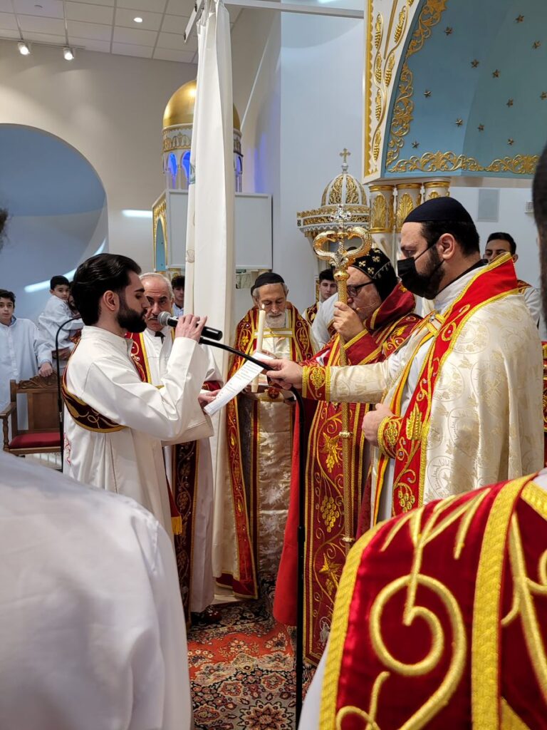 On Sunday December 19, 2021, His Eminence Mor Dionysius John Kawak assisted by Very Rev. Fr. Joseph Chamoun the Parish Priest and Rev. Fr. Gabriel Alkass, celebrated the Holy Qurobo at St. Mark’s Cathedral in Paramus, New Jersey. During the Qurobo, His Eminence ordained Gabriel Fermano, John Hanna, Stephen Mourad, Andrew Fermano, Gabriel Mourad, and Sebastian (Kenoro) Kiraz from the rank of Readers to the rank of Sub Deacons (Afidyakno). In his sermon, he spoke about the importance of serving the church as a deacon everyday by giving to the needy as well as visiting the sick to be a true disciple of Christ. He then congratulated the families and the deacons on their ordination.