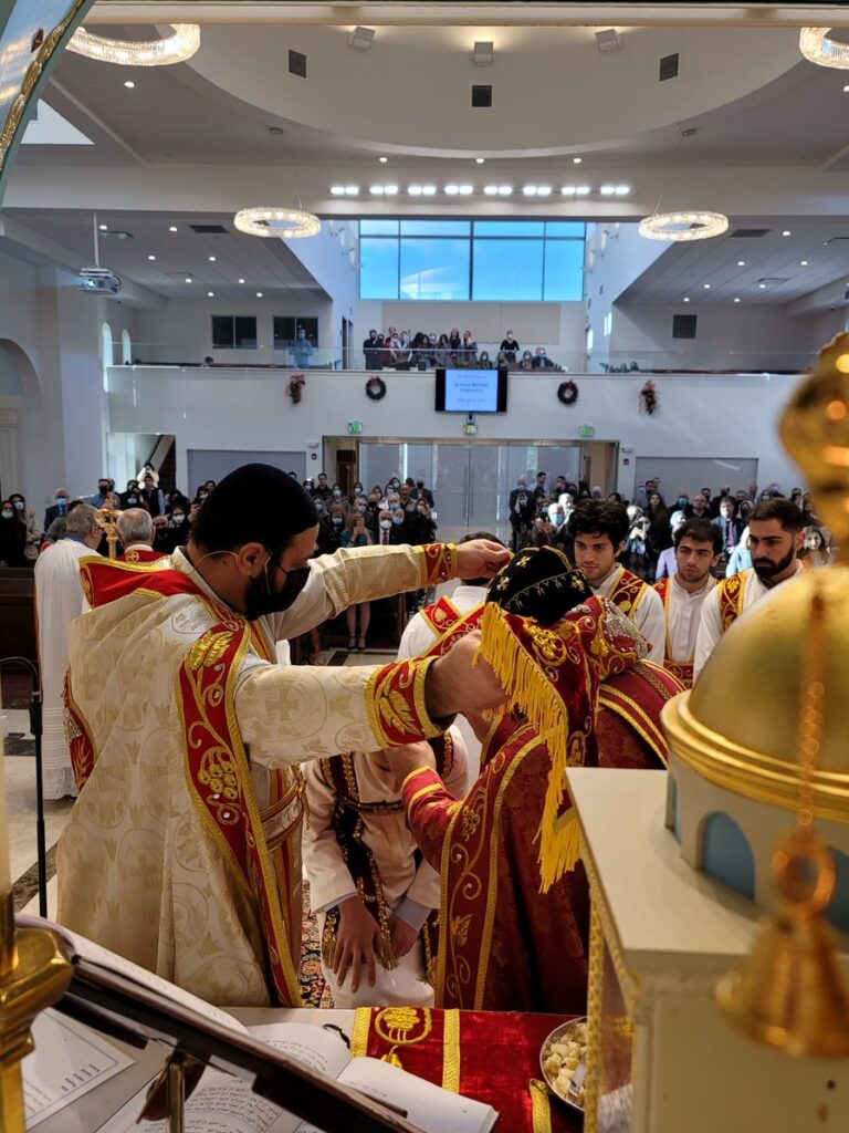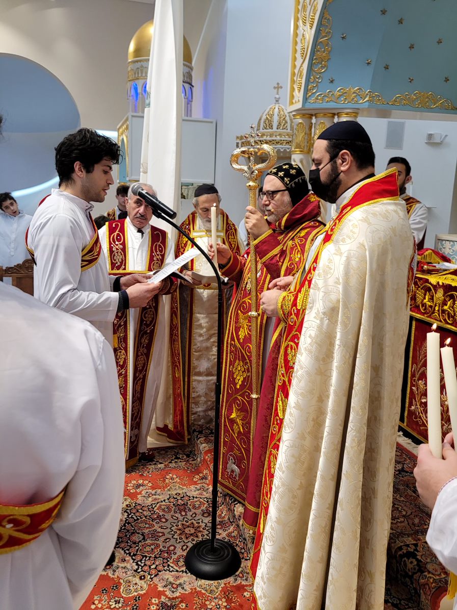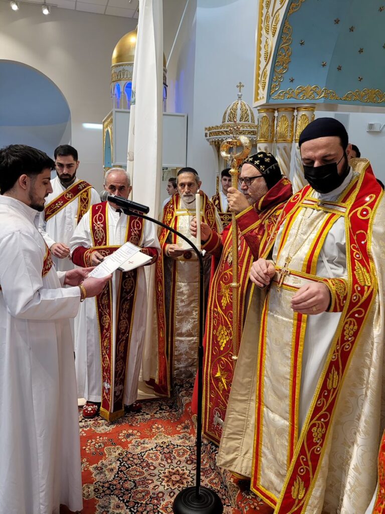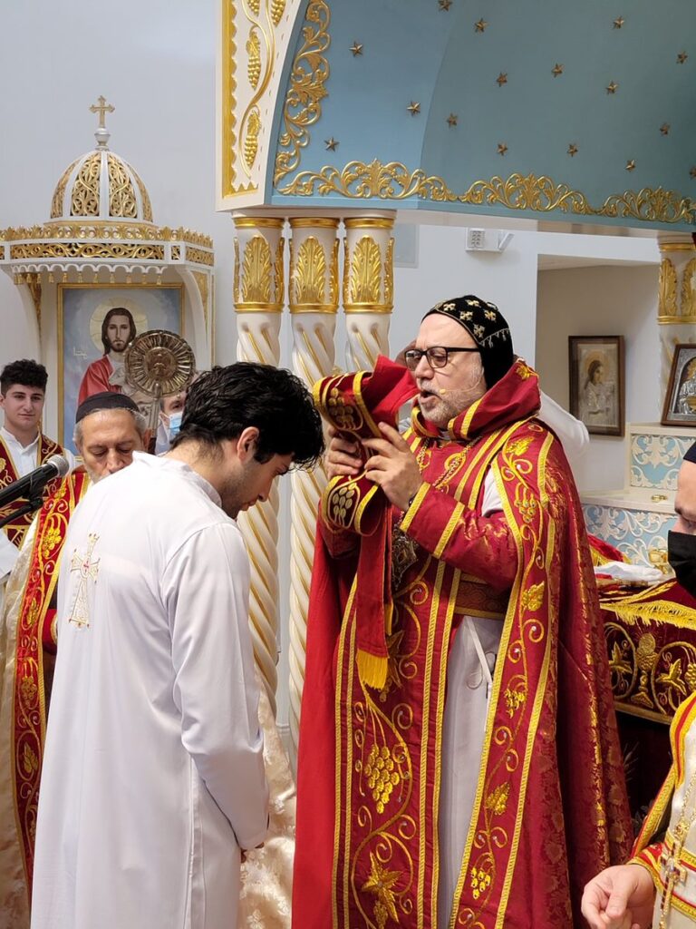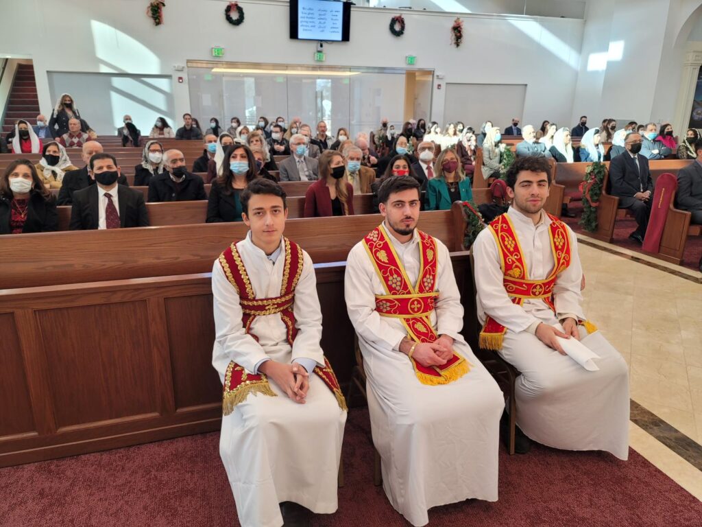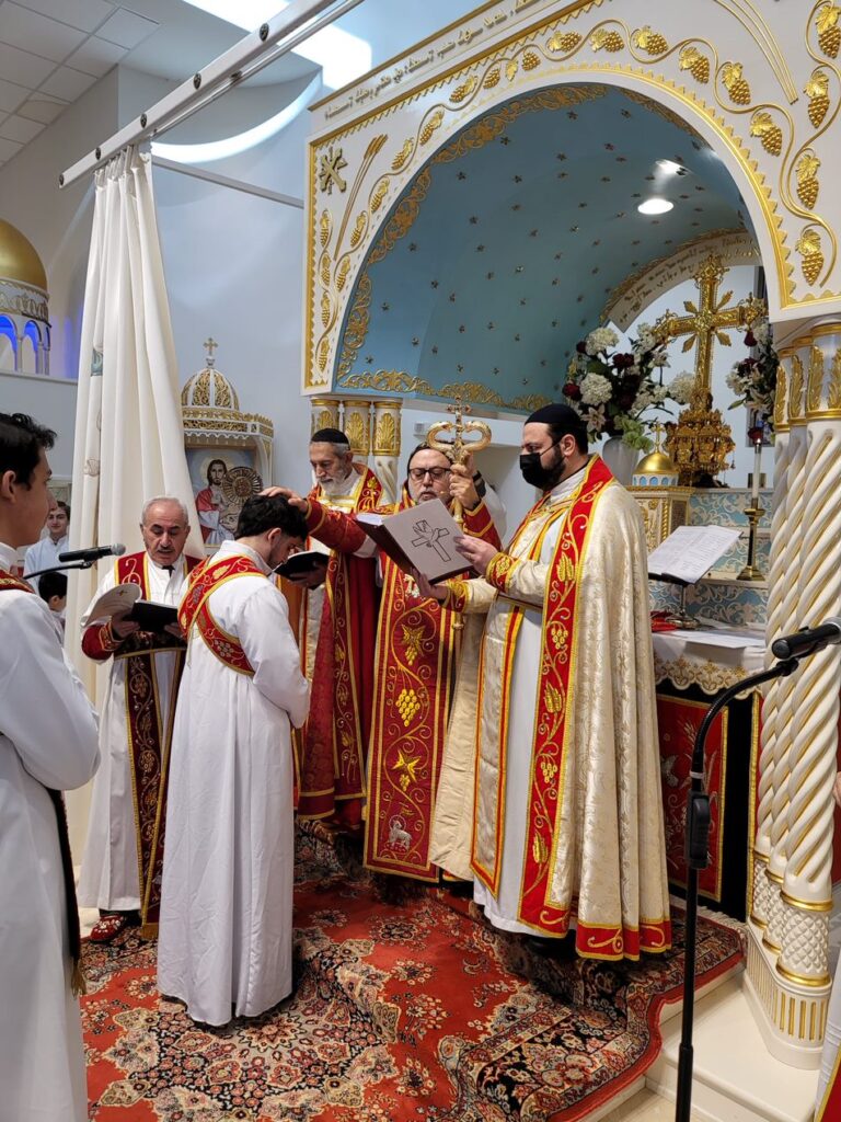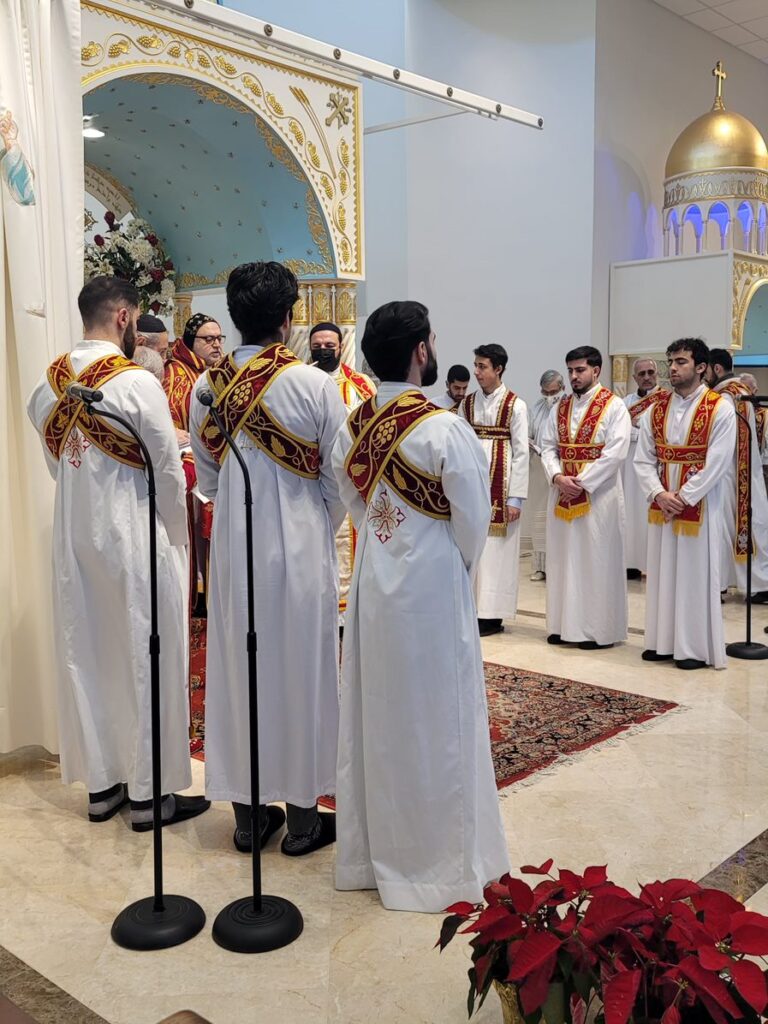 On Sunday December 19, 2021, His Eminence Mor Dionysius John Kawak assisted by Very Rev. Fr. Joseph Chamoun the Parish Priest and Rev. Fr. Gabriel Alkass, celebrated the Holy Qurobo at St. Mark’s Cathedral in Paramus, New Jersey. During the Qurobo, His Eminence ordained Gabriel Fermano, John Hanna, Stephen Mourad, Andrew Fermano, Gabriel Mourad, and Sebastian (Kenoro) Kiraz from the rank of Readers to the rank of Sub Deacons (Afidyakno). In his sermon, he spoke about the importance of serving the church as a deacon everyday by giving to the needy as well as visiting the sick to be a true disciple of Christ. He then congratulated the families and the deacons on their ordination.