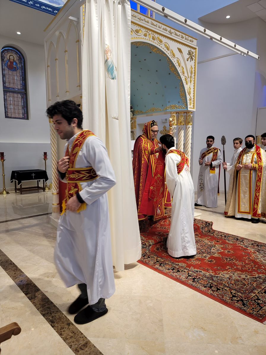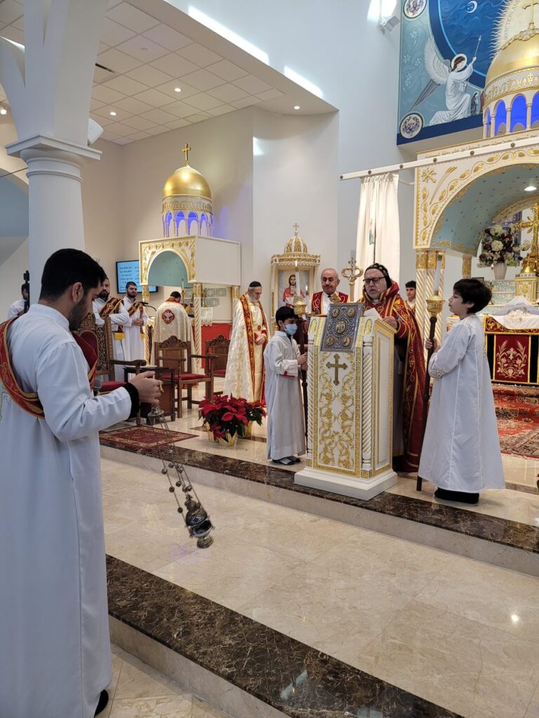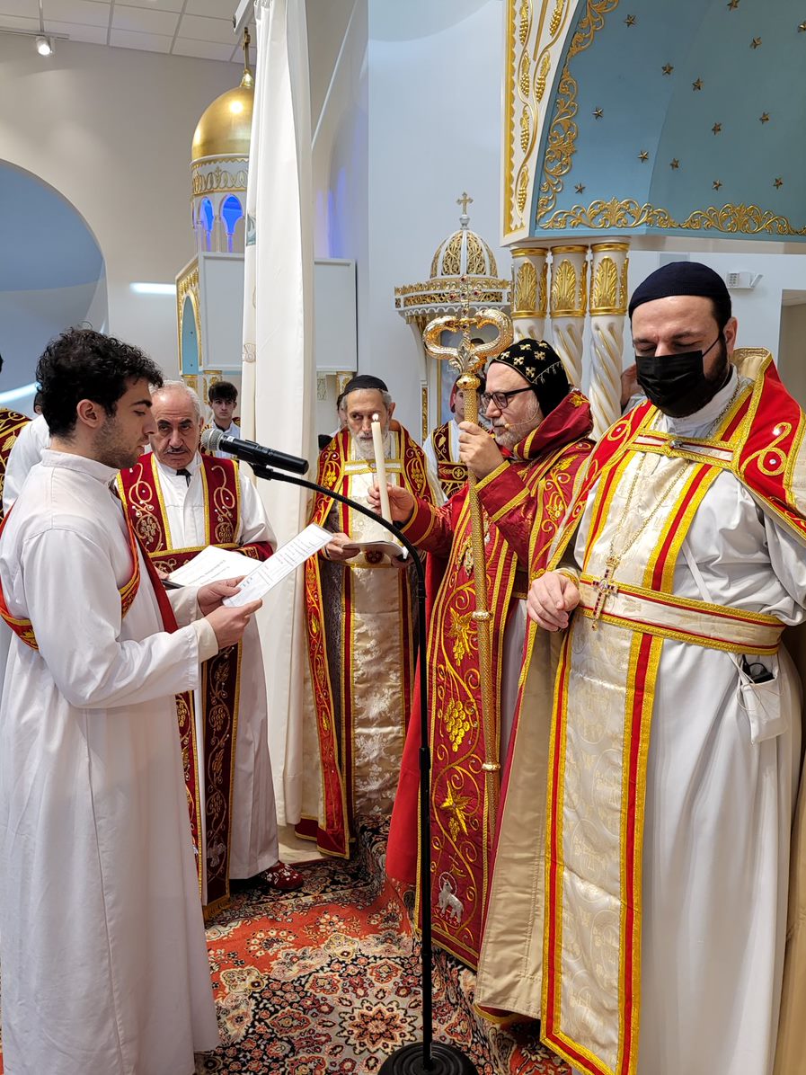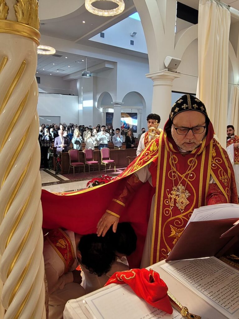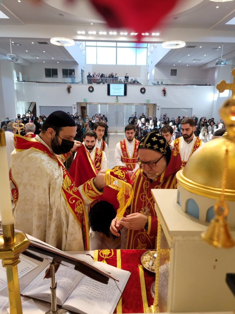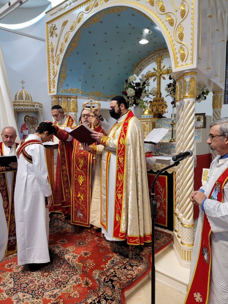 On Sunday December 19, 2021, His Eminence Mor Dionysius John Kawak assisted by Very Rev. Fr. Joseph Chamoun the Parish Priest and Rev. Fr. Gabriel Alkass, celebrated the Holy Qurobo at St. Mark’s Cathedral in Paramus, New Jersey. During the Qurobo, His Eminence ordained Gabriel Fermano, John Hanna, Stephen Mourad, Andrew Fermano, Gabriel Mourad, and Sebastian (Kenoro) Kiraz from the rank of Readers to the rank of Sub Deacons (Afidyakno). In his sermon, he spoke about the importance of serving the church as a deacon everyday by giving to the needy as well as visiting the sick to be a true disciple of Christ. He then congratulated the families and the deacons on their ordination.