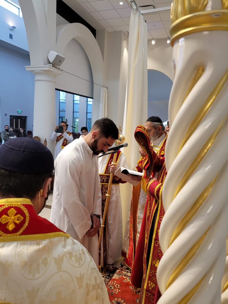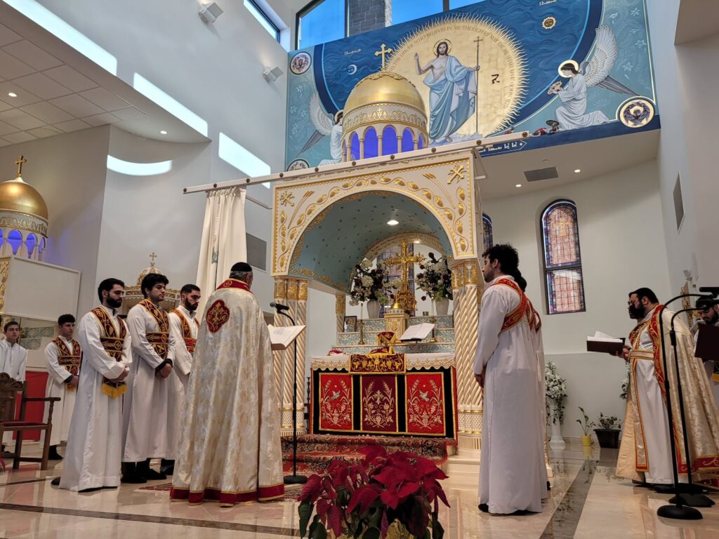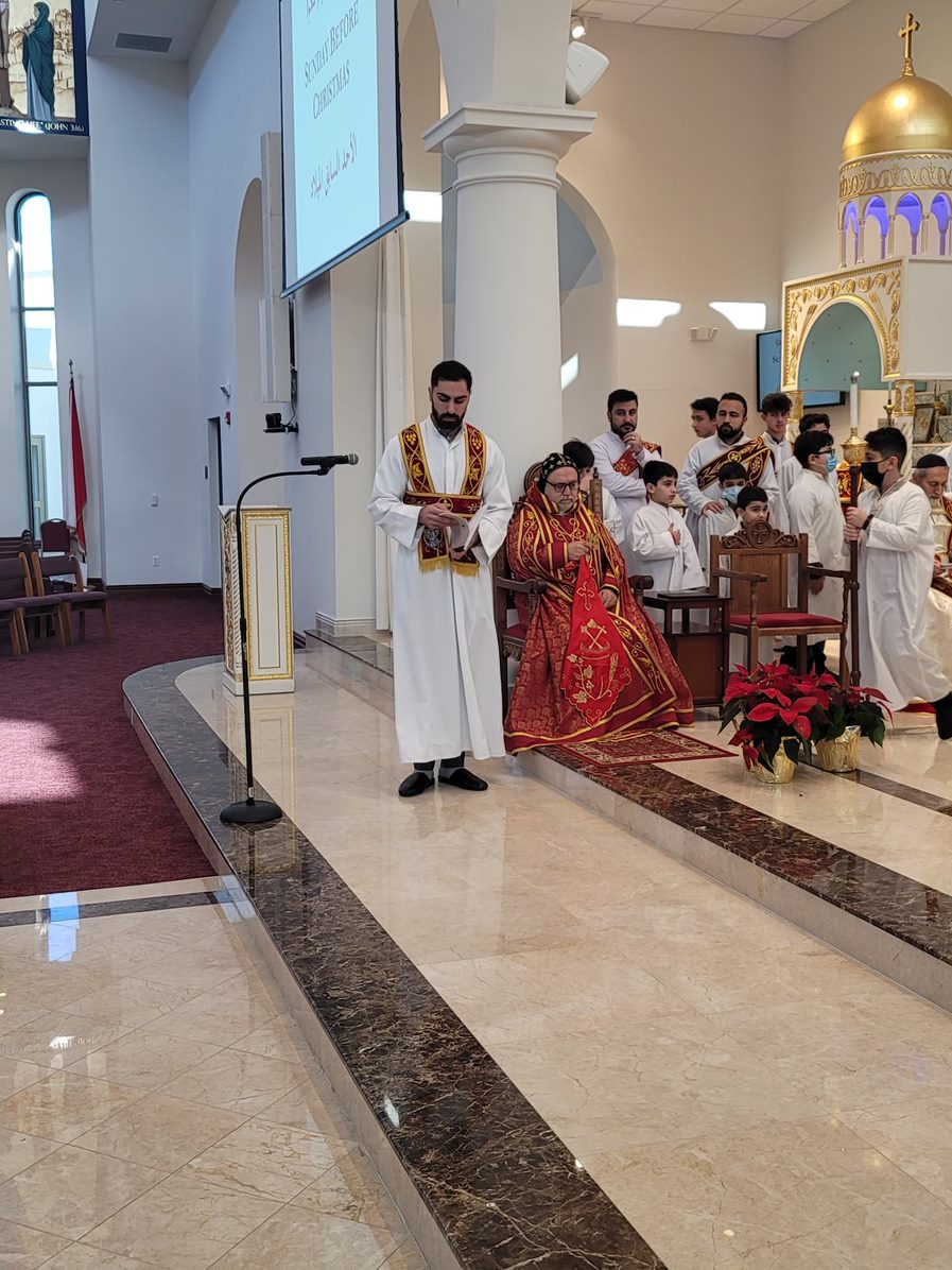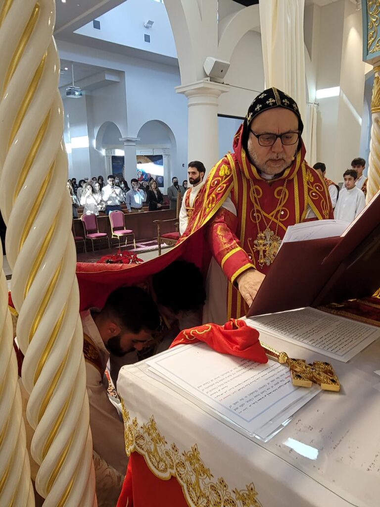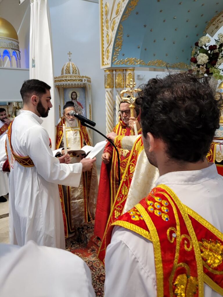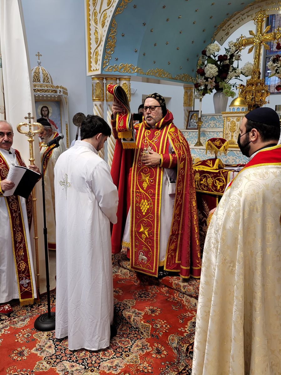 On Sunday December 19, 2021, His Eminence Mor Dionysius John Kawak assisted by Very Rev. Fr. Joseph Chamoun the Parish Priest and Rev. Fr. Gabriel Alkass, celebrated the Holy Qurobo at St. Mark’s Cathedral in Paramus, New Jersey. During the Qurobo, His Eminence ordained Gabriel Fermano, John Hanna, Stephen Mourad, Andrew Fermano, Gabriel Mourad, and Sebastian (Kenoro) Kiraz from the rank of Readers to the rank of Sub Deacons (Afidyakno). In his sermon, he spoke about the importance of serving the church as a deacon everyday by giving to the needy as well as visiting the sick to be a true disciple of Christ. He then congratulated the families and the deacons on their ordination.