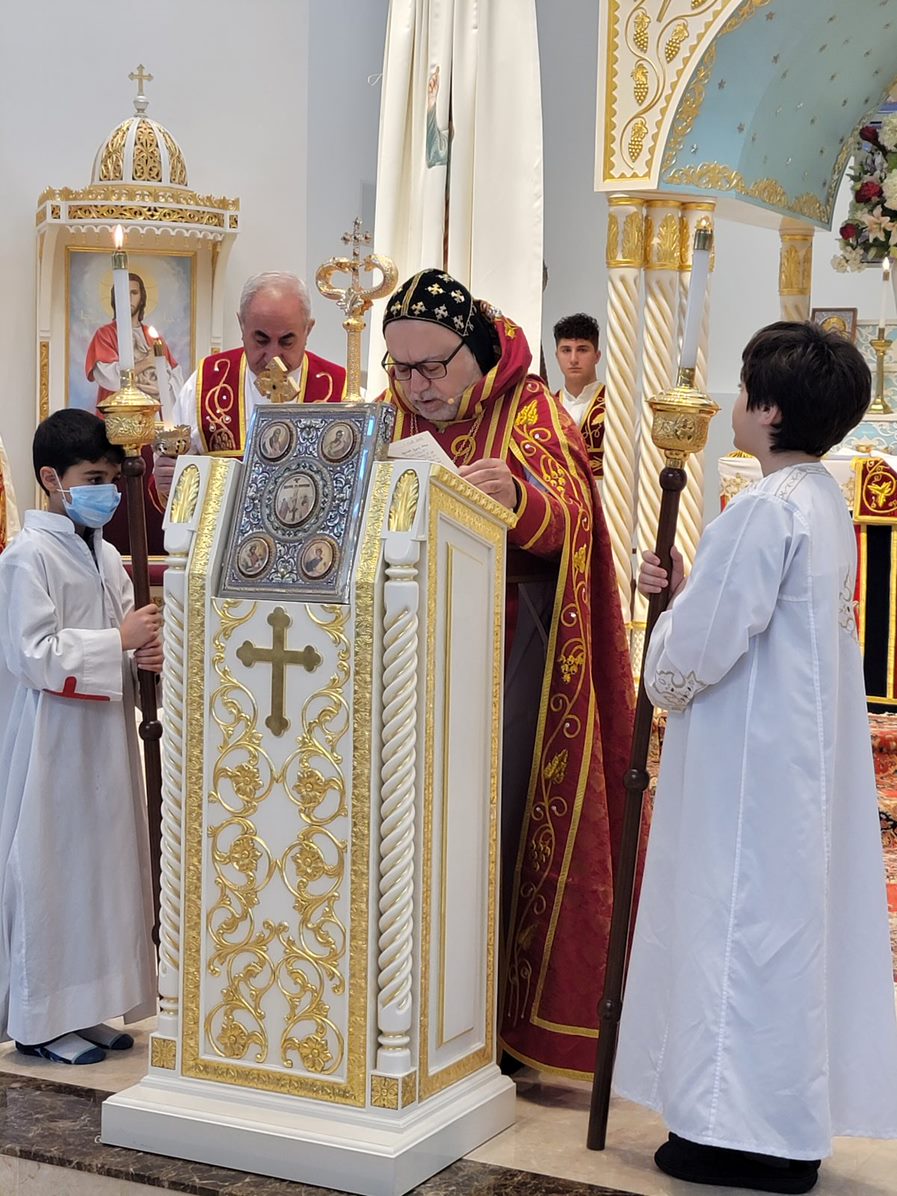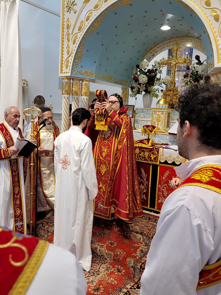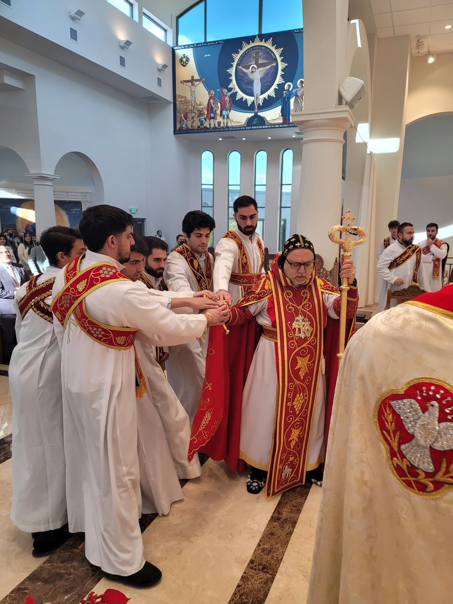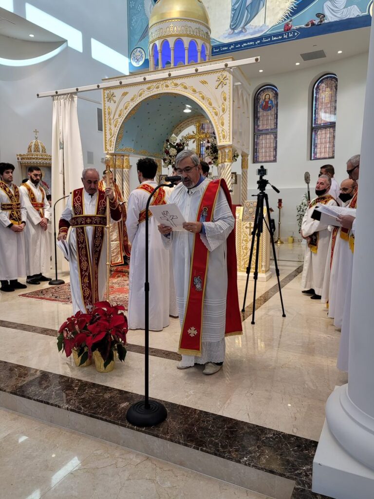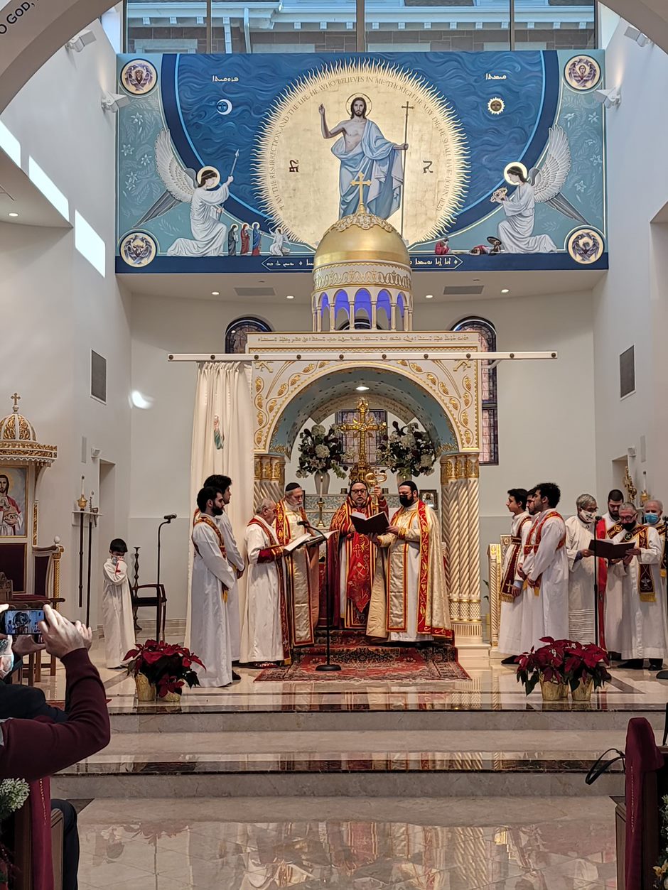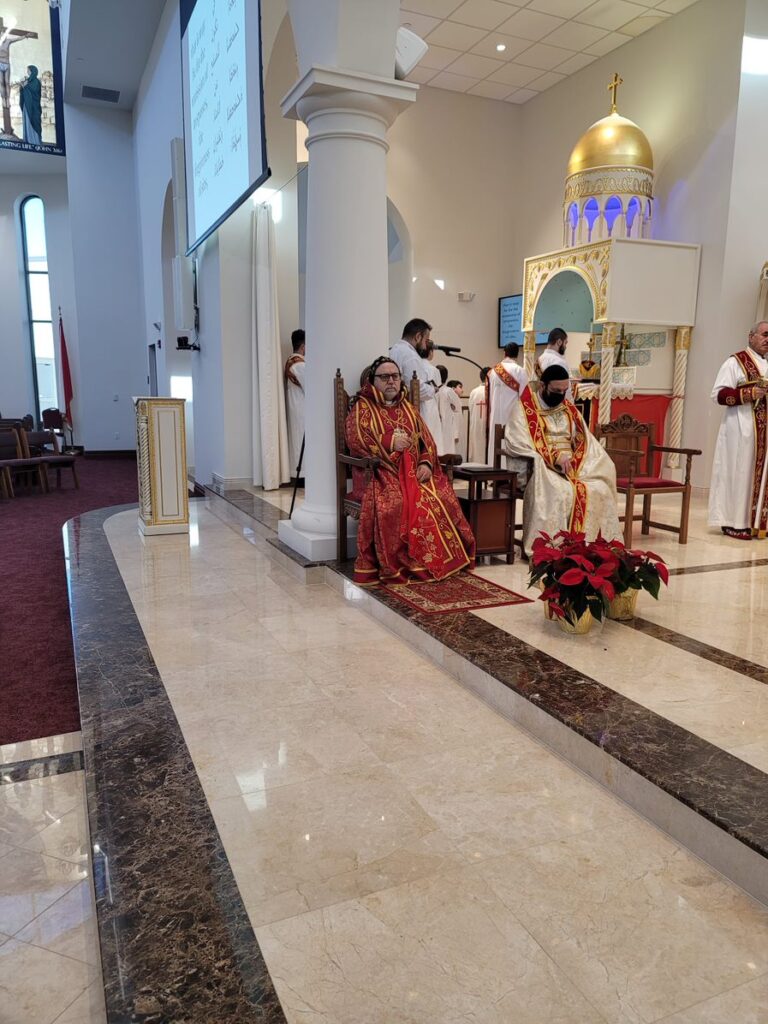 On Sunday December 19, 2021, His Eminence Mor Dionysius John Kawak assisted by Very Rev. Fr. Joseph Chamoun the Parish Priest and Rev. Fr. Gabriel Alkass, celebrated the Holy Qurobo at St. Mark’s Cathedral in Paramus, New Jersey. During the Qurobo, His Eminence ordained Gabriel Fermano, John Hanna, Stephen Mourad, Andrew Fermano, Gabriel Mourad, and Sebastian (Kenoro) Kiraz from the rank of Readers to the rank of Sub Deacons (Afidyakno). In his sermon, he spoke about the importance of serving the church as a deacon everyday by giving to the needy as well as visiting the sick to be a true disciple of Christ. He then congratulated the families and the deacons on their ordination.
