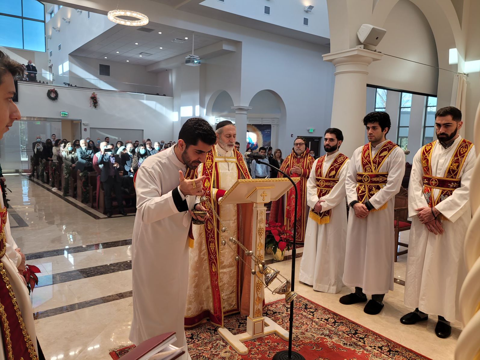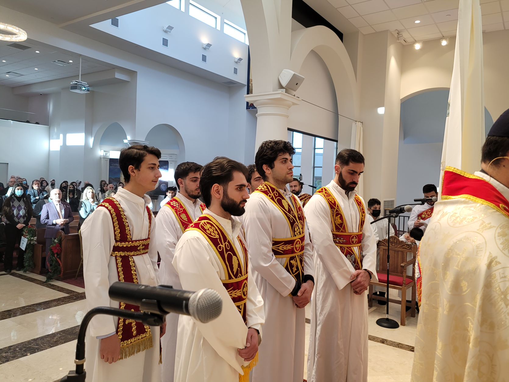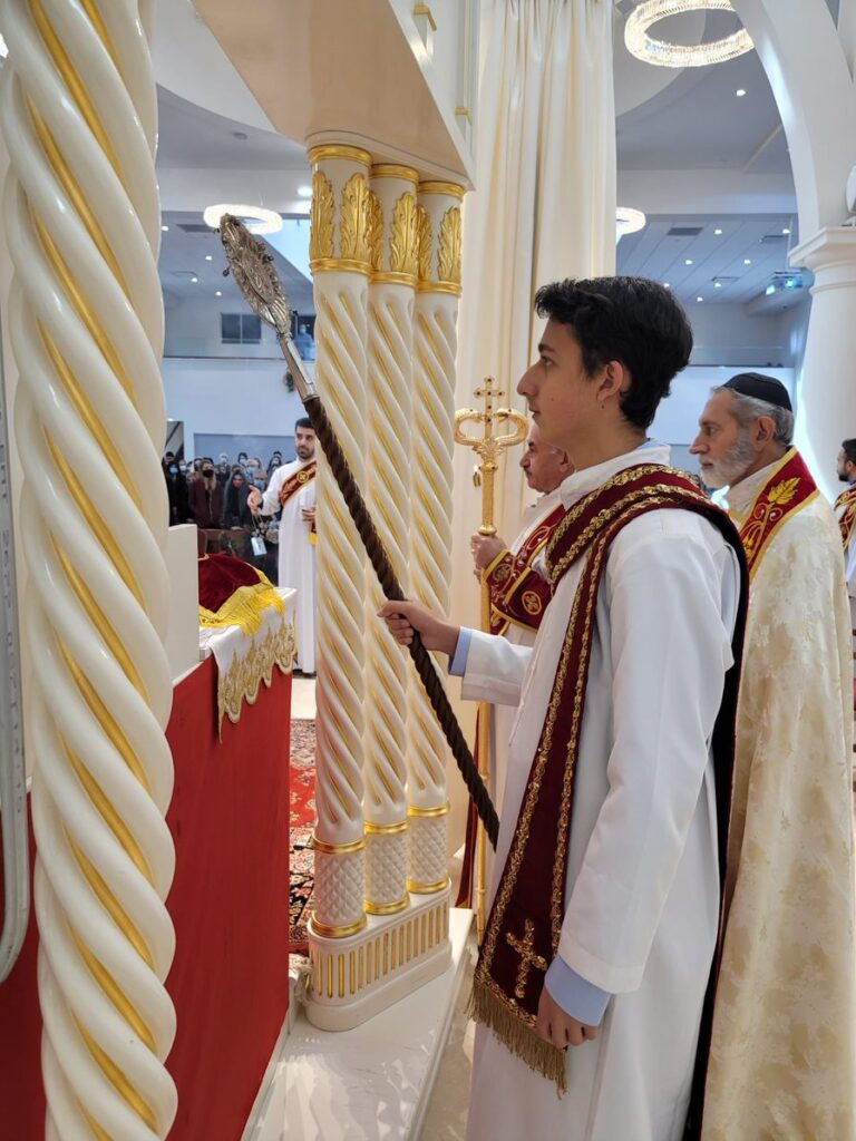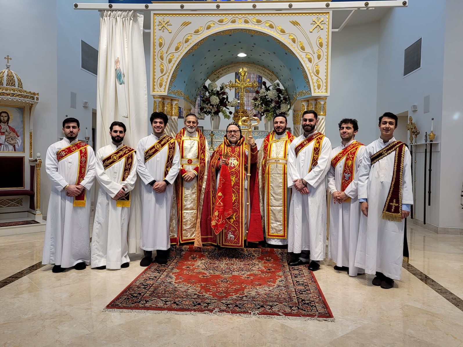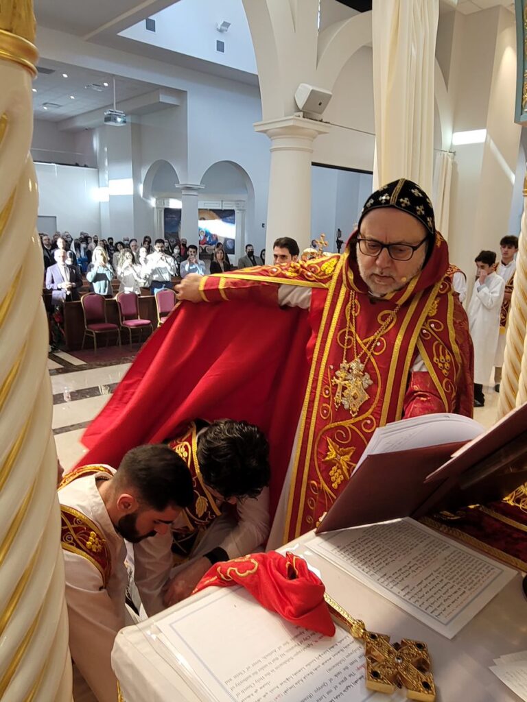 On Sunday December 19, 2021, His Eminence Mor Dionysius John Kawak assisted by Very Rev. Fr. Joseph Chamoun the Parish Priest and Rev. Fr. Gabriel Alkass, celebrated the Holy Qurobo at St. Mark’s Cathedral in Paramus, New Jersey. During the Qurobo, His Eminence ordained Gabriel Fermano, John Hanna, Stephen Mourad, Andrew Fermano, Gabriel Mourad, and Sebastian (Kenoro) Kiraz from the rank of Readers to the rank of Sub Deacons (Afidyakno). In his sermon, he spoke about the importance of serving the church as a deacon everyday by giving to the needy as well as visiting the sick to be a true disciple of Christ. He then congratulated the families and the deacons on their ordination.
