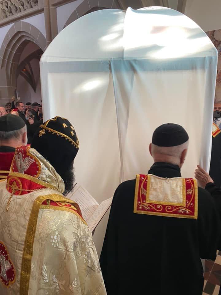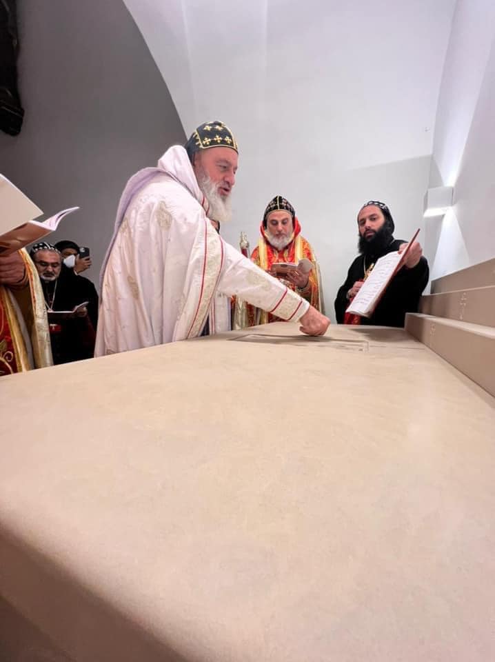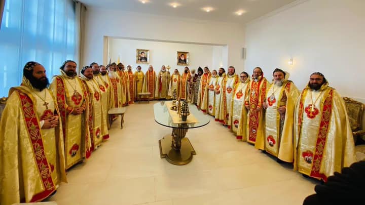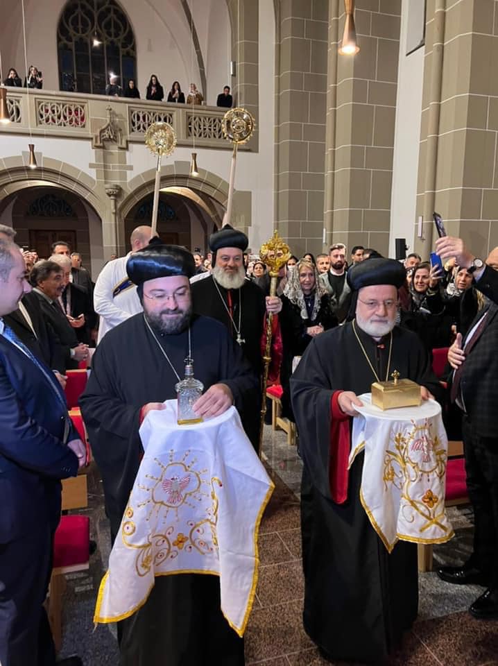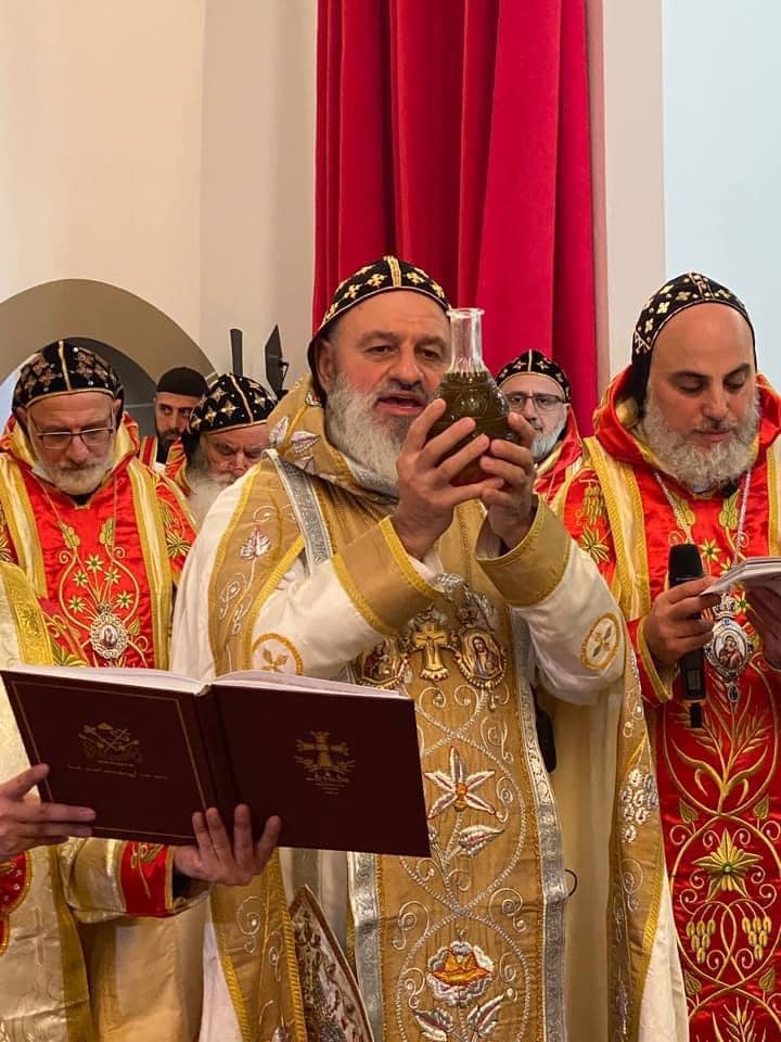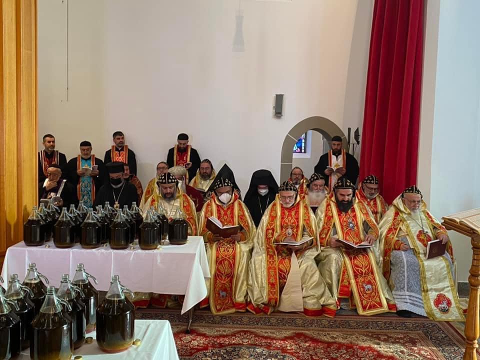 His Eminence Archbishop Mor Dionysius John Kawak participates on the Myron Consecration in Mor Jacob of Sarug Monastery in Warburg, GermanyOn Sunday, November 28, 2021, His Eminence Mor Dionysius John Kawak participated in the Myron Consecration at Mor Jacob of Sarug Monastery in Warburg, Germany. On the occasion of the 1500 jubilee of the departure of Mor Jacob of Sarug. His Holiness Patriarch Mor Ignatius Aphrem II assisted by a large number of the Archbishops of our Holy Synod consecrated the Holy Myron for the first time in Europe.Previously the day before, on Saturday, November 27, 2021, His Holiness Patriarch Mor Ignatius Aphrem II consecrated the altar of Mor Jacob of Sarug at Mor Jacob of Sarug Monastery in Warburg. His Holiness blessed the faithful with the relics of Mor Jacob of Sarug which were brought from St. Mary Church in Diyarbakir for this special day.