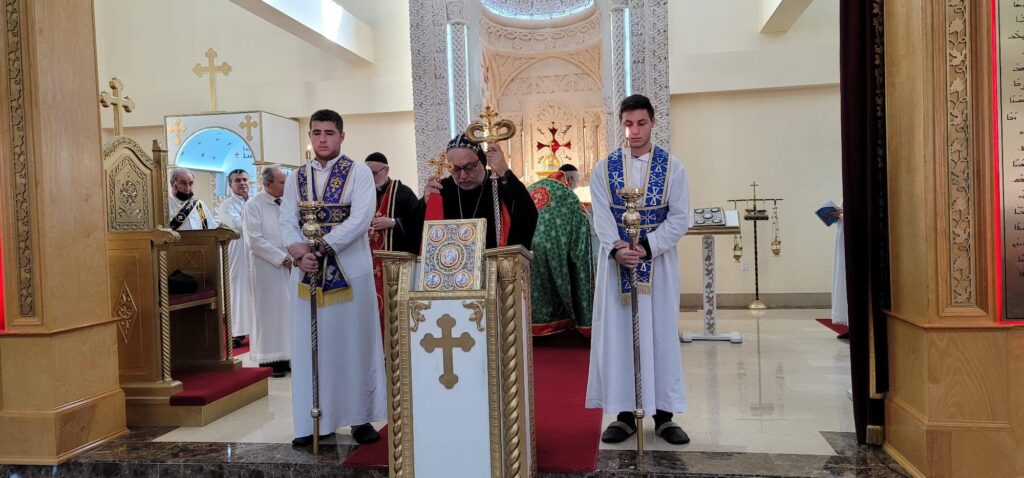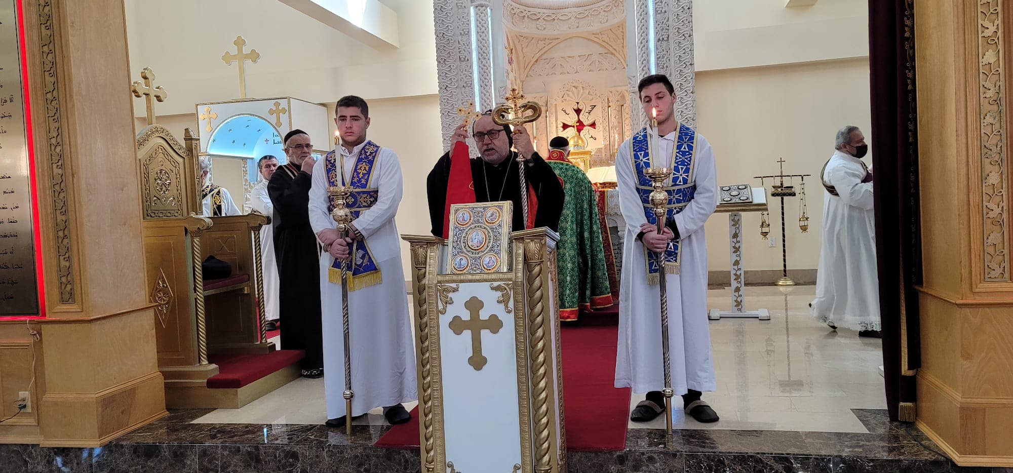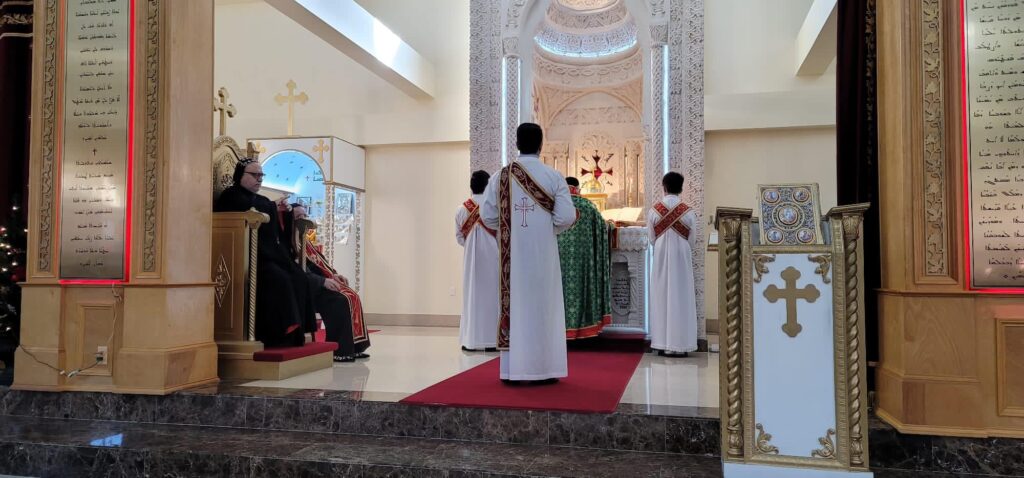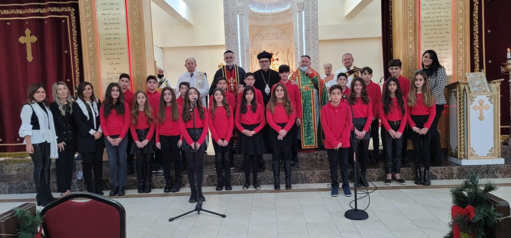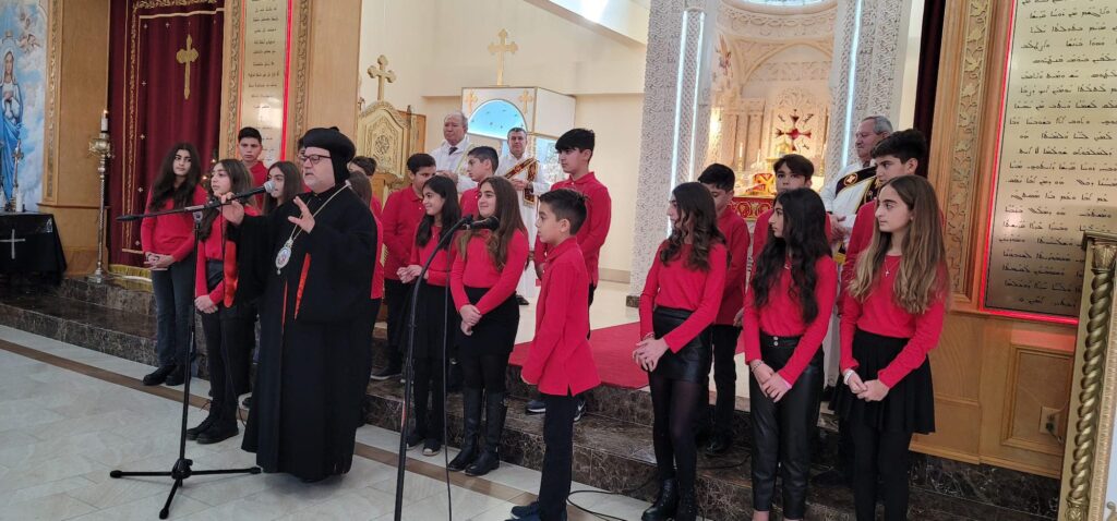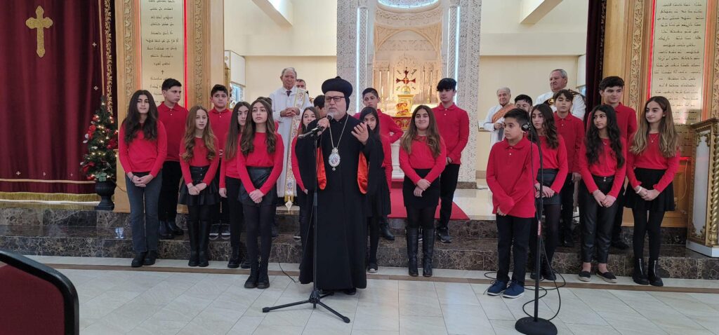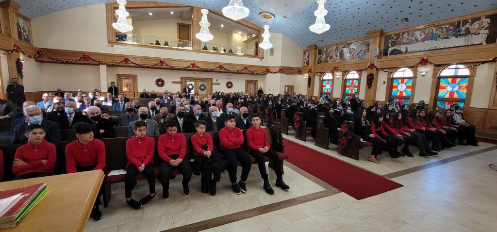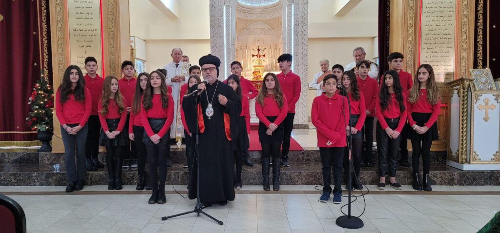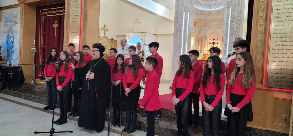 On Sunday, December 5, 2021, His Eminence Mor Dionysius John Kawak attended the Holy Liturgy celebrated by Very Rev. Fr. Aziz Hadodo in the presence of Very Rev. Fr. Joseph Shabo, at Mor Gabriel Church in Haworth, NJ. During the Holy Liturgy the children of Mor Gabriel performed a Christmas Recital and chanted Christmas Hymns in Syriac and in English. His Eminence blessed the children after the recital and thanked the parents for supporting them and bringing them always to the church. He also thanked all those who helped prepare for this spiritual and fruitful recital.