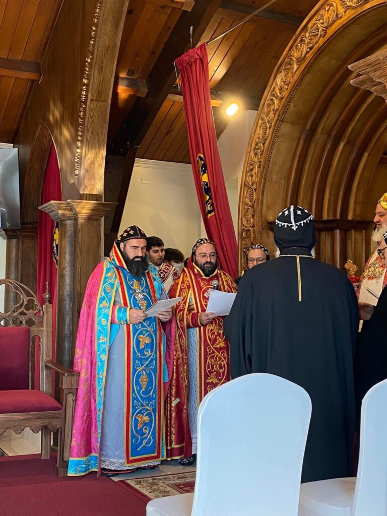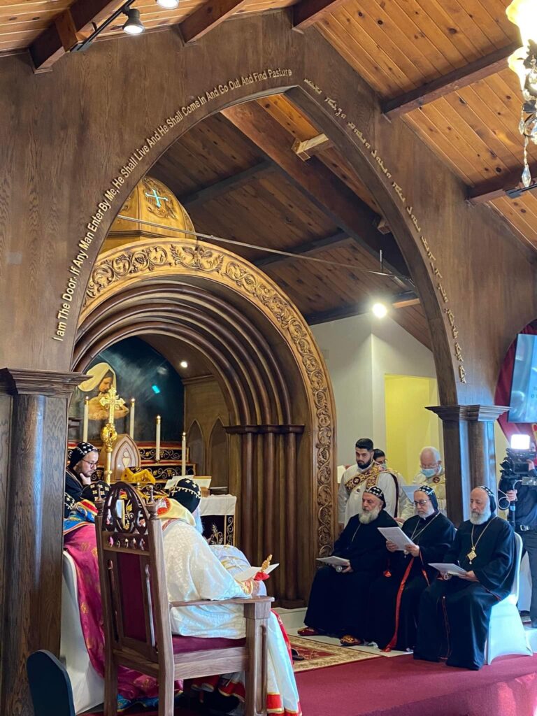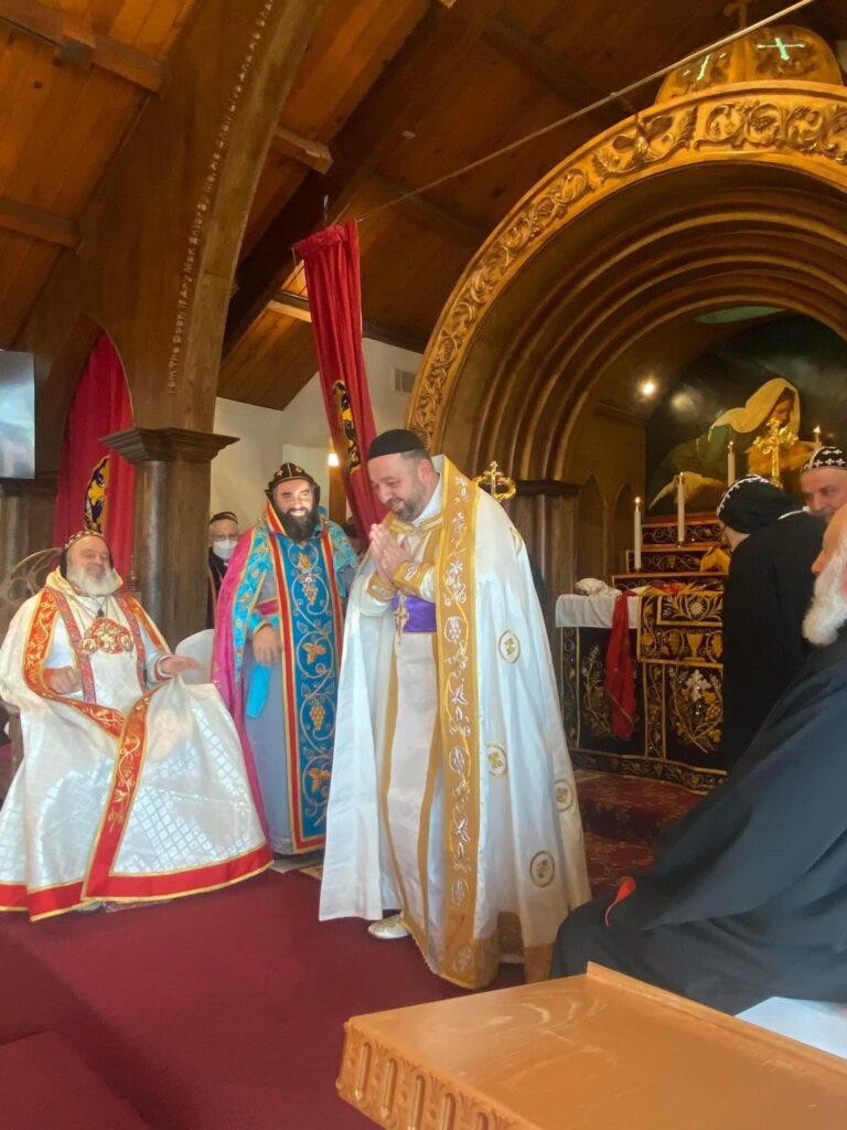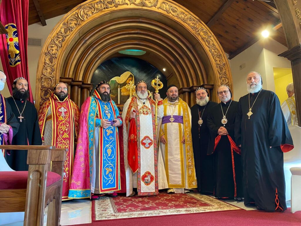 On January 30, 2022, His Holiness Patriarch Mor Ignatius Aphrem II celebrated the Holy Qurobo at St. James of Sarug Church in California.His Holiness was assisted by their Eminences Archbishops: Mor Dioscoros Benjamin Atas, Patriarchal Vicar in Sweden, and Mor Timotheos Matta Al-Khoury, Archbishop of Homs, Hama, Tartous and Environs. Their Eminences Archbishops: Mor Clemis Eugene Kaplan, Patriarchal Vicar for the Archdiocese of the Western USA, Mor Dionysius John Kawak, Patriarchal Vicar for the Archdiocese of the Eastern United States of America, Mor Maurice Amsih, Archbishop of Jazeera and Euphrates, and Mor Joseph Bali, Patriarchal Secretary and Media Office Director, were also present in the Holy Qurobo.In his sermon, His Holiness spoke about the divinity of the Lord Jesus Christ which the people refused to believe and confess even after witnessing the miracles that He performed. He added that those who knew Christ as a child living among them, growing up and becoming a carpenter, were surprised at the wisdom with which He spoke because they did not believe in Him, and they were following their own prejudice which blinded their hearts from seeing the truth. His Holiness said that many in our days behave in the same manner, neglecting the other instead on encouraging them and looking at their good qualities. He pointed out that we should learn to respect everybody and support the weak, without hatred, so that we become true disciples of Christ, walking in His footsteps in love, as befits the true ambassadors of Christ. During the Holy Qurobo, His Holiness elevated Rev. Fr. John Kouki to the rank of Khuroyo. Very Rev. Fr. John thanked His Holiness for his love and support to all the faithful of the parish. He also expressed his gratitude to His Holiness for bestowing on him this rank, asking for his prayers that the Lord may bless his ministry and make it fruitful.