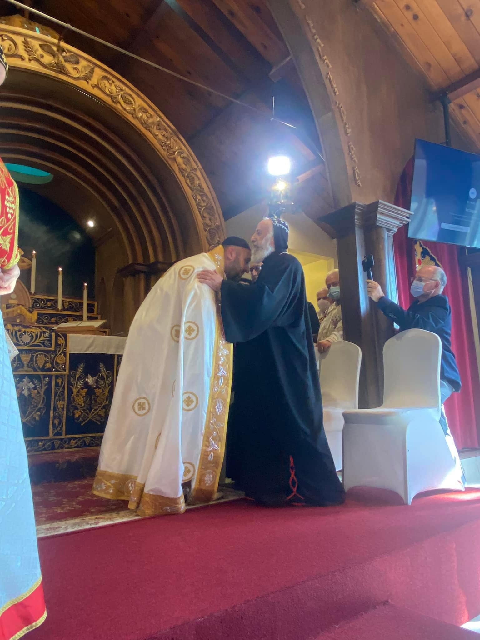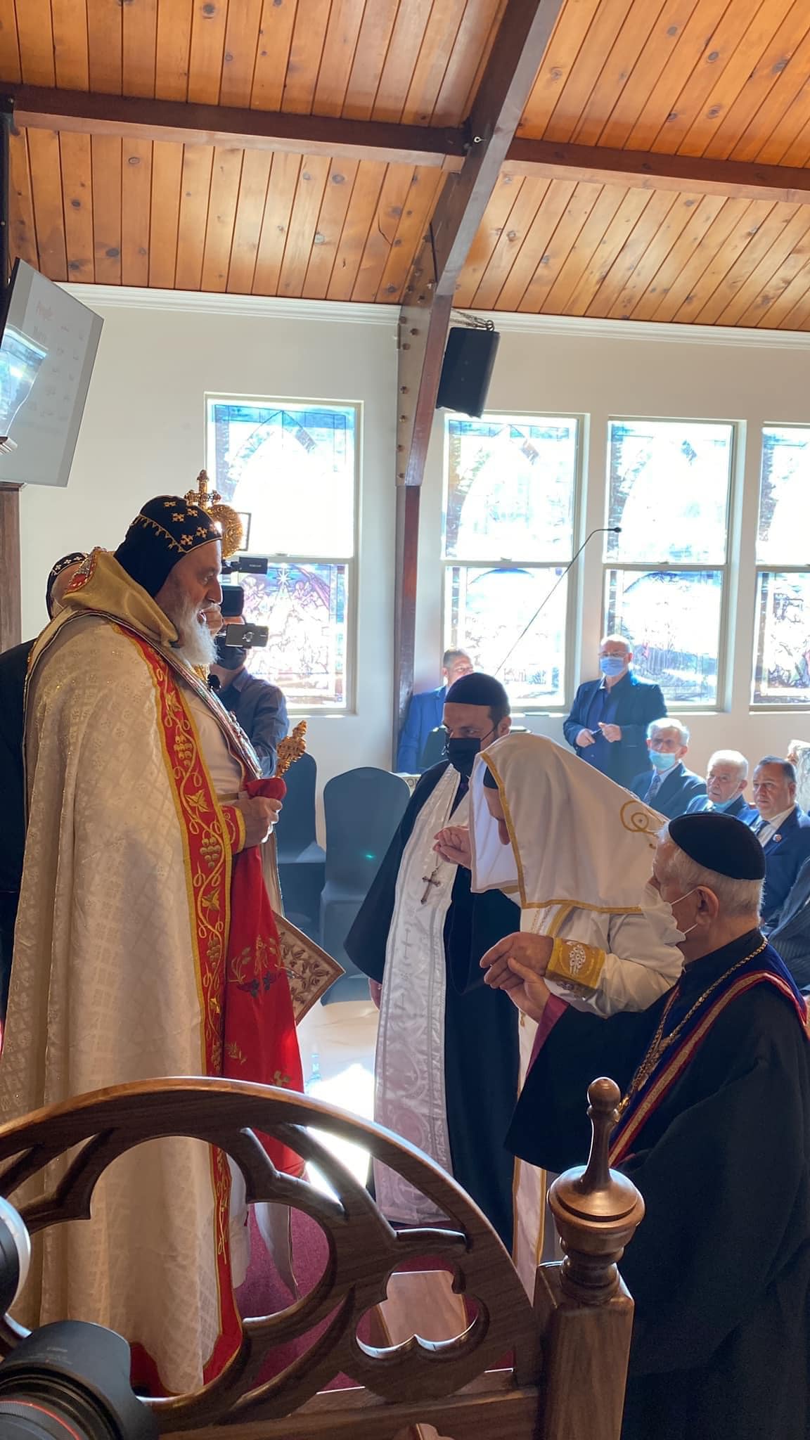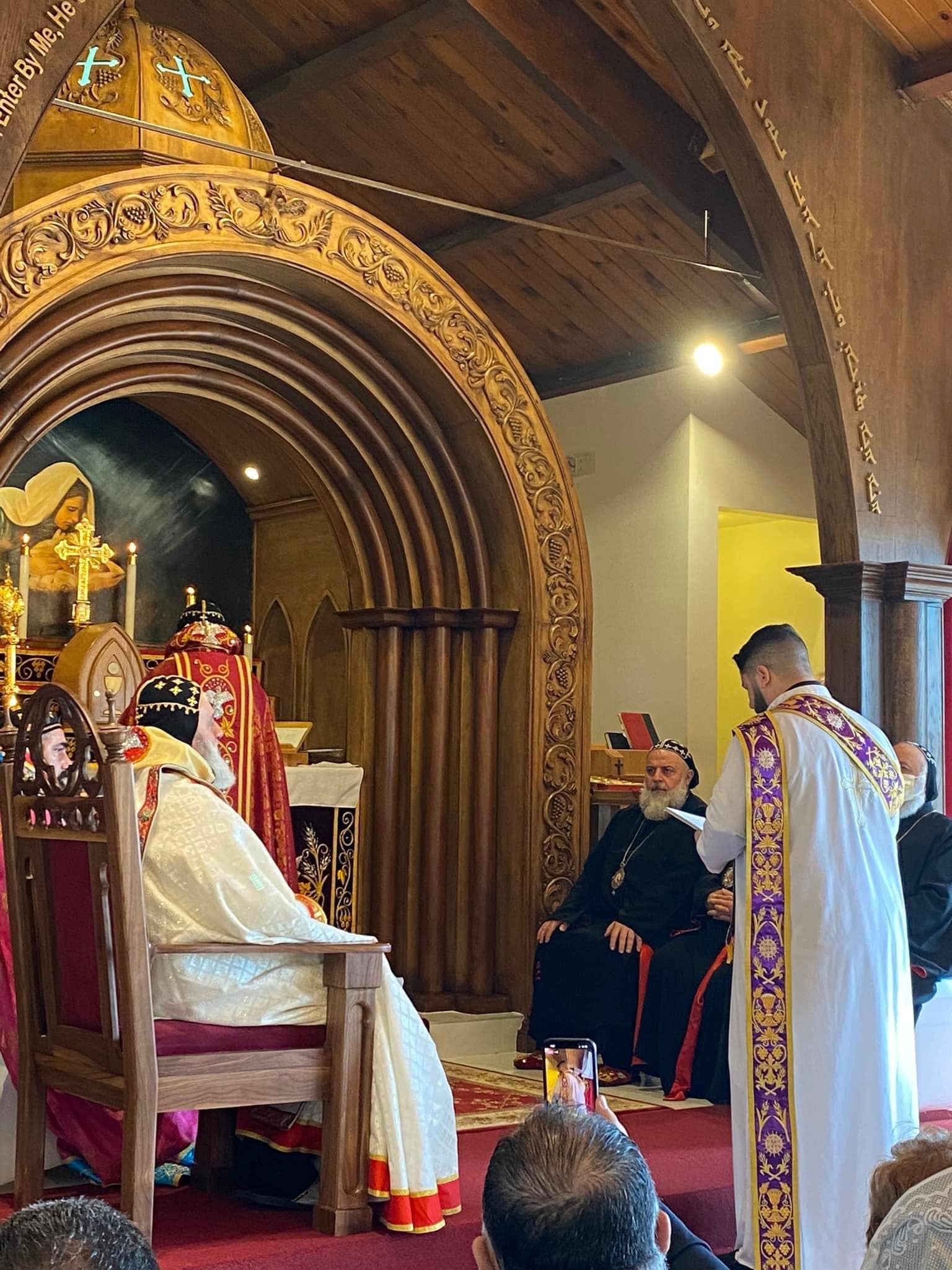 On January 30, 2022, His Holiness Patriarch Mor Ignatius Aphrem II celebrated the Holy Qurobo at St. James of Sarug Church in California.His Holiness was assisted by their Eminences Archbishops: Mor Dioscoros Benjamin Atas, Patriarchal Vicar in Sweden, and Mor Timotheos Matta Al-Khoury, Archbishop of Homs, Hama, Tartous and Environs. Their Eminences Archbishops: Mor Clemis Eugene Kaplan, Patriarchal Vicar for the Archdiocese of the Western USA, Mor Dionysius John Kawak, Patriarchal Vicar for the Archdiocese of the Eastern United States of America, Mor Maurice Amsih, Archbishop of Jazeera and Euphrates, and Mor Joseph Bali, Patriarchal Secretary and Media Office Director, were also present in the Holy Qurobo.In his sermon, His Holiness spoke about the divinity of the Lord Jesus Christ which the people refused to believe and confess even after witnessing the miracles that He performed. He added that those who knew Christ as a child living among them, growing up and becoming a carpenter, were surprised at the wisdom with which He spoke because they did not believe in Him, and they were following their own prejudice which blinded their hearts from seeing the truth. His Holiness said that many in our days behave in the same manner, neglecting the other instead on encouraging them and looking at their good qualities. He pointed out that we should learn to respect everybody and support the weak, without hatred, so that we become true disciples of Christ, walking in His footsteps in love, as befits the true ambassadors of Christ. During the Holy Qurobo, His Holiness elevated Rev. Fr. John Kouki to the rank of Khuroyo. Very Rev. Fr. John thanked His Holiness for his love and support to all the faithful of the parish. He also expressed his gratitude to His Holiness for bestowing on him this rank, asking for his prayers that the Lord may bless his ministry and make it fruitful.