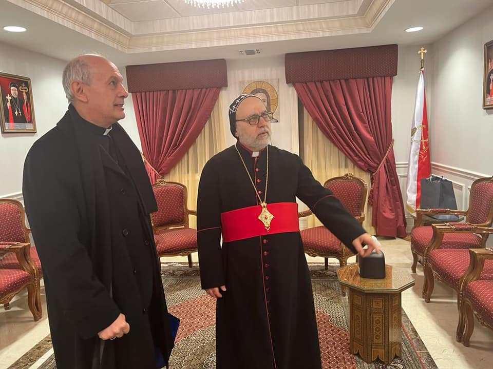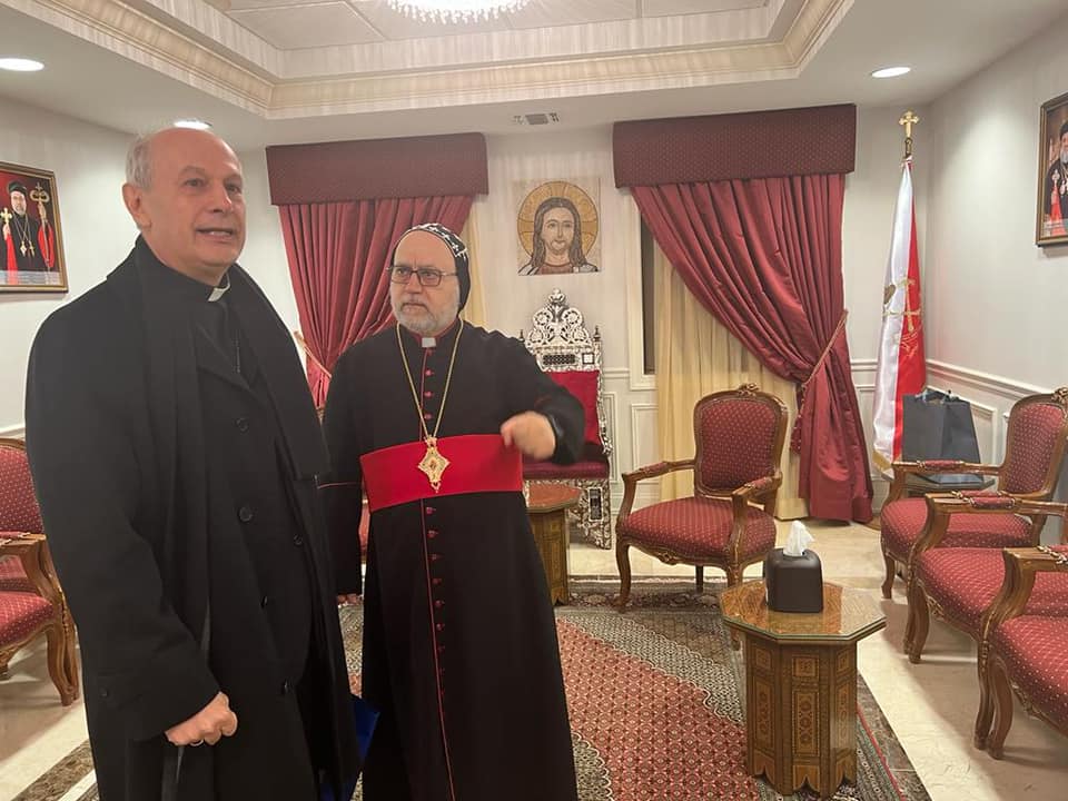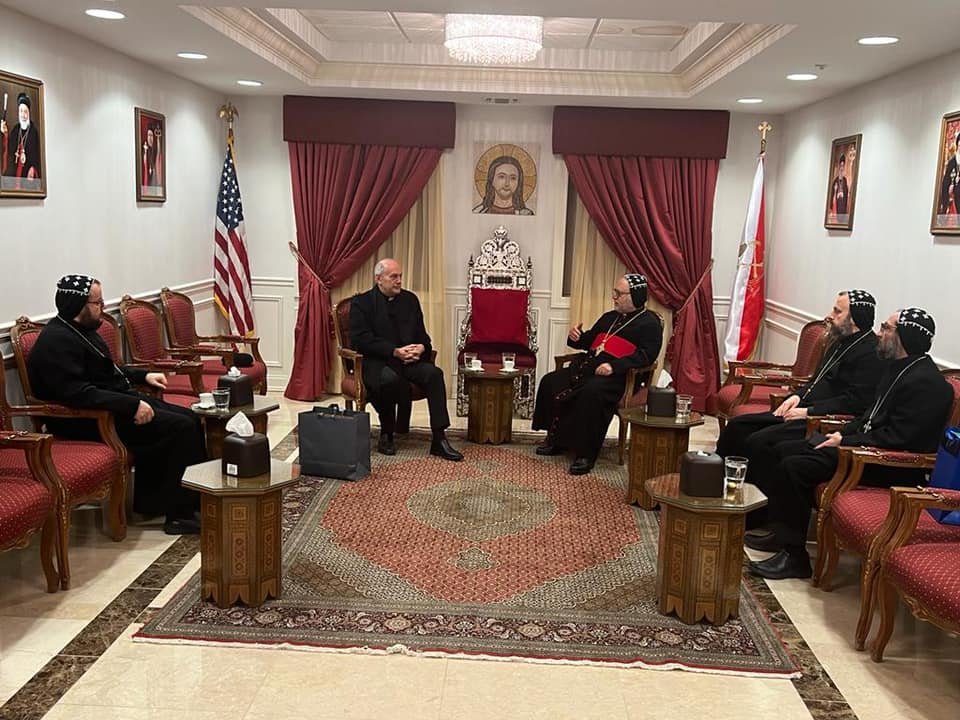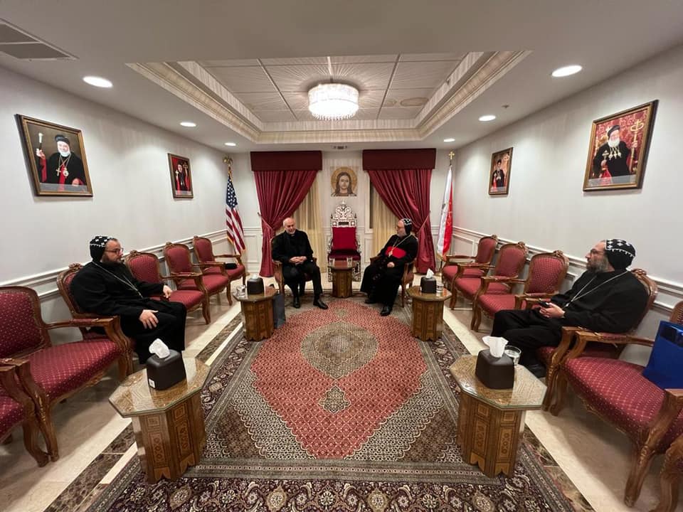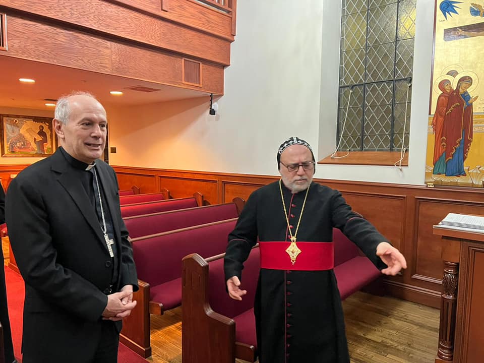 On Tuesday, February 8, 2022, His Eminence Mor Dionysius John Kawak received His Eminence Archbishop Gabriele Giordano Caccia, Apostolic Nuncio, Permanent Observer Permanent Observer Mission of the Holy See to the United Nations. Who visited our Archdiocese in Paramus, NJ, in the presence of Very Rev. Fr. Andrew Bahhi and Very Rev. Fr. Augeen Alkhouri Nimat and Very Rev. Fr. Saliba Kassis. During his visit their Eminences discussed church matters and they spoke about the difficult situation of the Christians in the Middle East. After the visit both Archbishops shared a meal of Agape together.