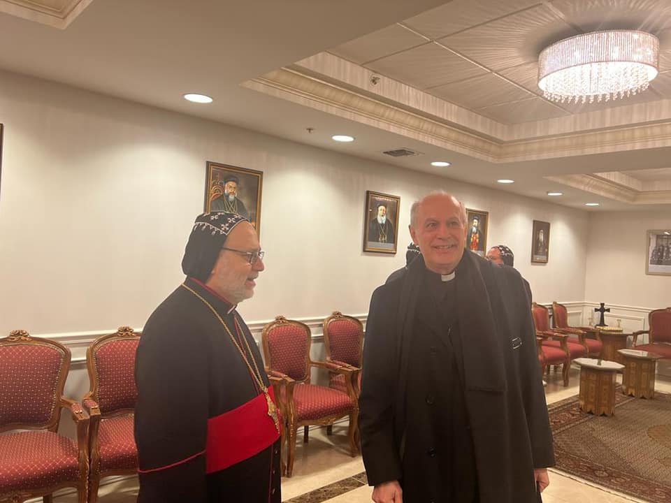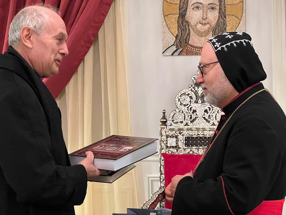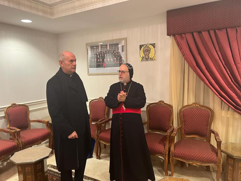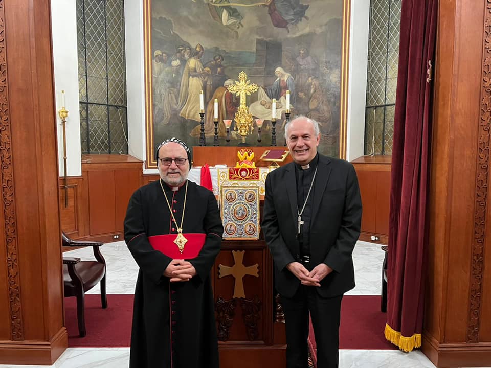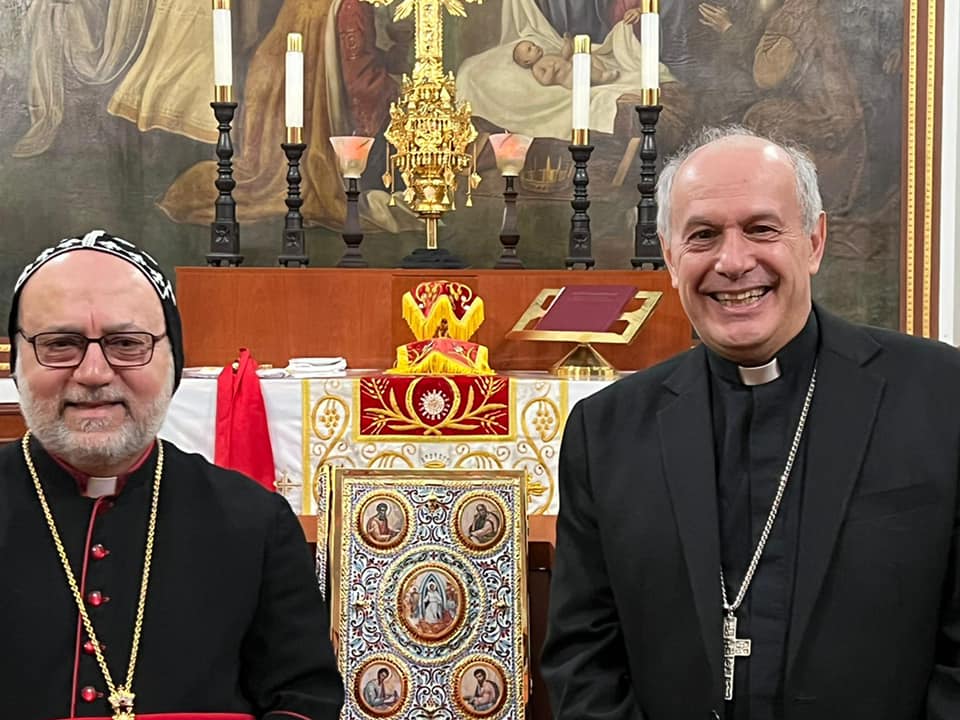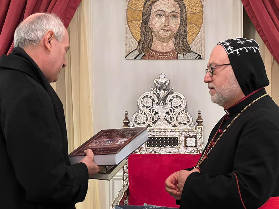 On Tuesday, February 8, 2022, His Eminence Mor Dionysius John Kawak received His Eminence Archbishop Gabriele Giordano Caccia, Apostolic Nuncio, Permanent Observer Permanent Observer Mission of the Holy See to the United Nations. Who visited our Archdiocese in Paramus, NJ, in the presence of Very Rev. Fr. Andrew Bahhi and Very Rev. Fr. Augeen Alkhouri Nimat and Very Rev. Fr. Saliba Kassis. During his visit their Eminences discussed church matters and they spoke about the difficult situation of the Christians in the Middle East. After the visit both Archbishops shared a meal of Agape together.