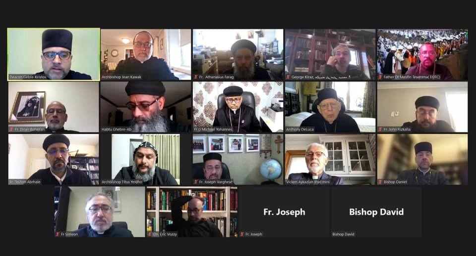 On Thursday, February 10, 2022, His Eminence Mor Dionysius John Kawak along with Very Rev. Fr. Joseph Chamoun and Deacon George Kiraz attended the SCOOCh meeting Via ZOOM. During the meeting a variety of issues and Church matters were addressed. The meeting was then concluded by a closing prayer