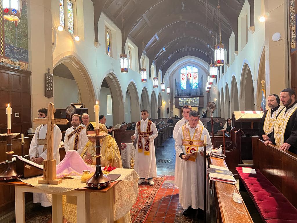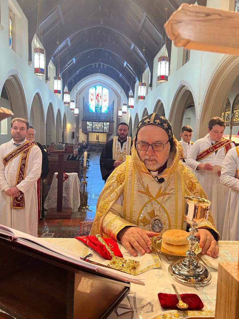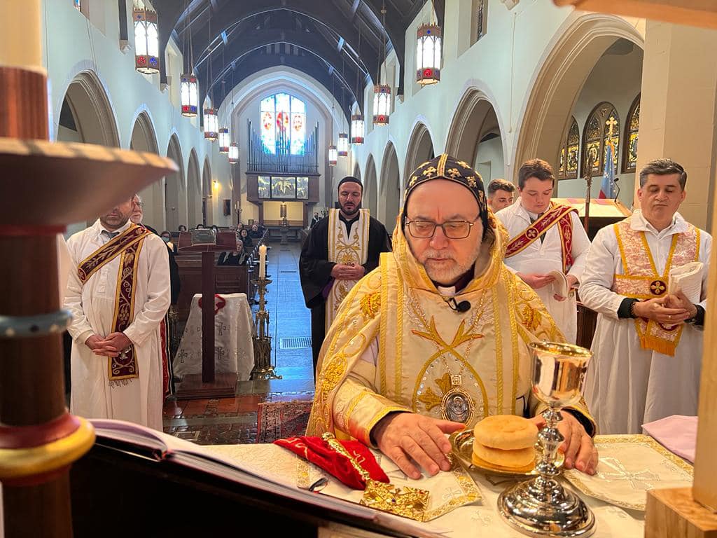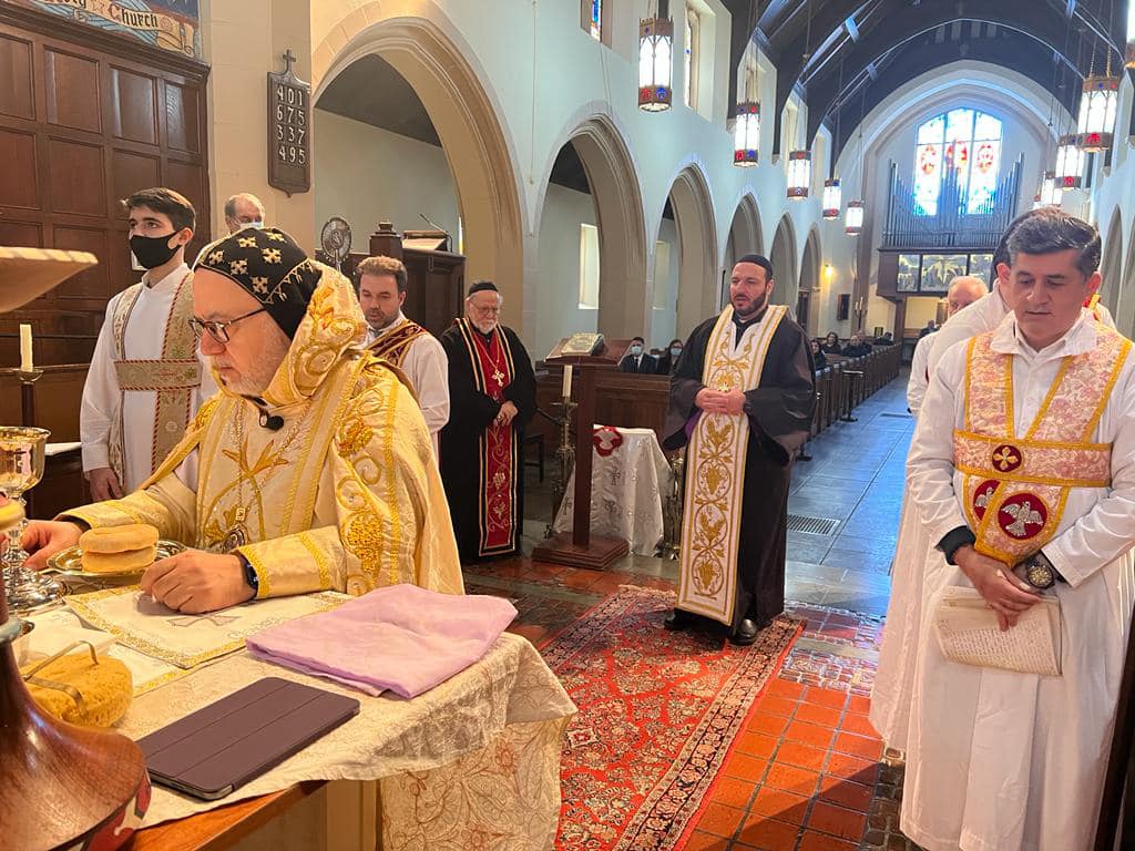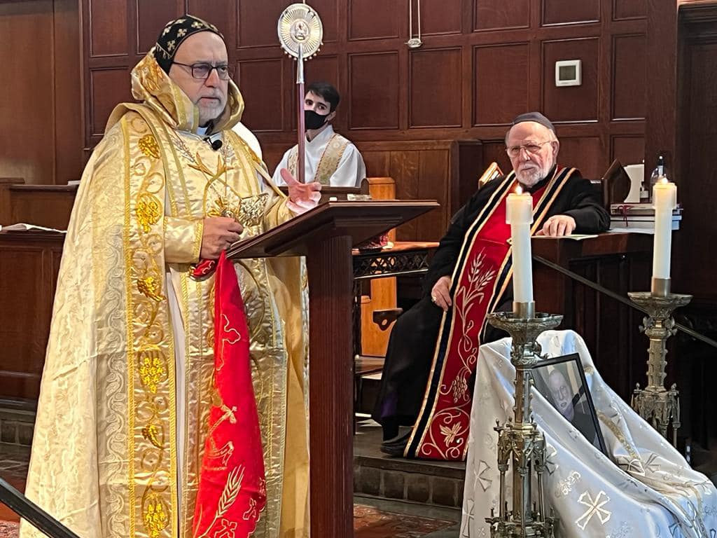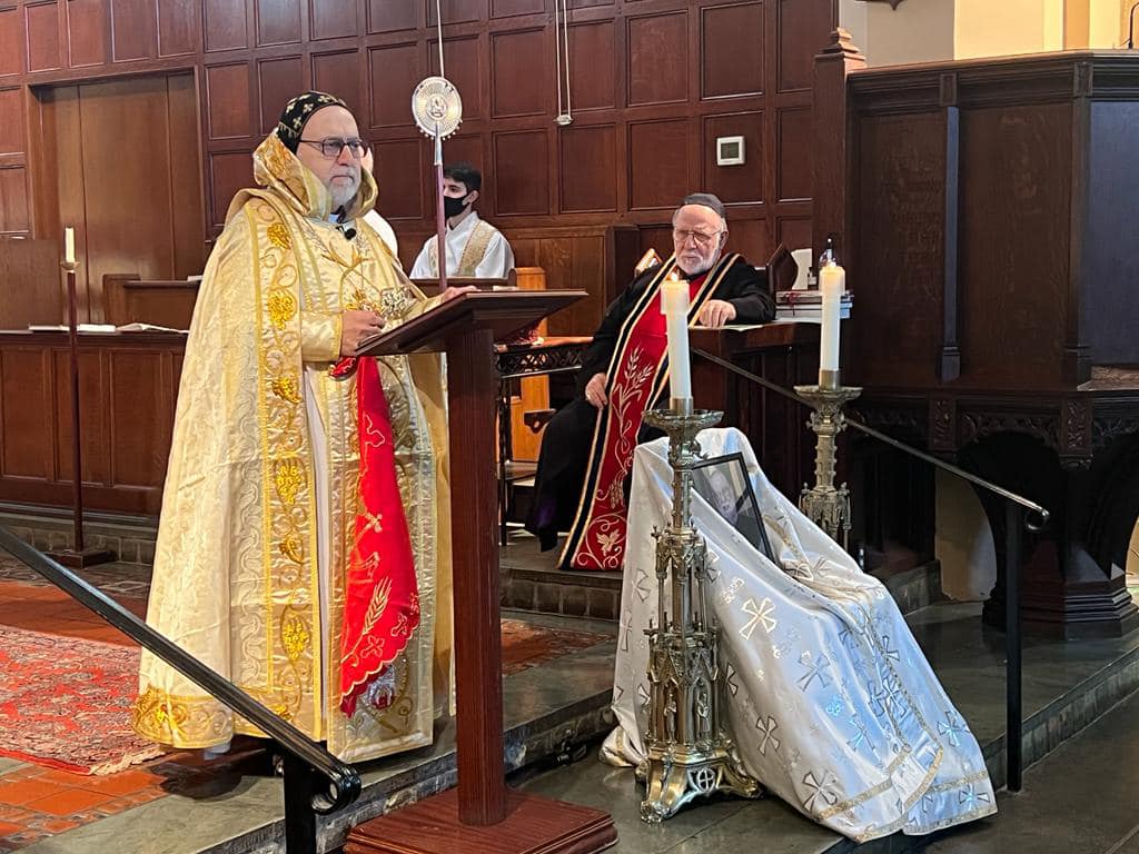 On Sunday, March 13, 2022, His Eminence Mor Dionysius John Kawak celebrated the Holy Liturgy at St. George Church in Brooklyn, New York, in the presence of Very Rev. Fr. Gabriel Adde the Parish Priest, Very Rev. Fr. Joseph Chamoun, and Very Rev. Fr. Andrew Bahhi. His Eminence delivered his sermon about the healing of the Leper and asked the congregation to do as Jesus did to accept and be a helping hand to the needy, marginalized and the outcast. He then spoke about Mor Aphrem and his humbleness and mentioned that he was the first to start a women’s choir in the Christian Church. His Eminence then congratulated His Holiness our Patriarch and all who carry Mor Aphrem’s name. At the end of the Liturgy a special service was celebrated to commemorate the late Rev. Fr. Aphrem Adde the brother of Very Rev. Fr. Gabriel Adde.