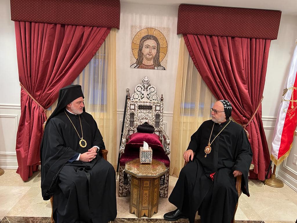 On Thursday, February 9, 2023, His Eminence Archbishop Elpidophoros of America paid a visit to His Eminence Mor Dionysius John Kawak at the Mor Aphrem Center.