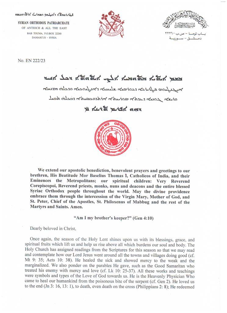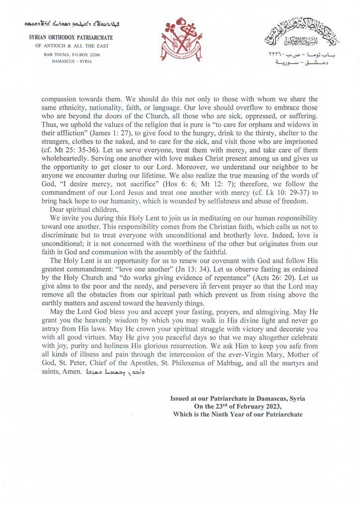 The Patriarchal Encyclical on the occasion of the Holy Lent 2023 in English 24 Feb February 24, 2023 Nehrin Akyon