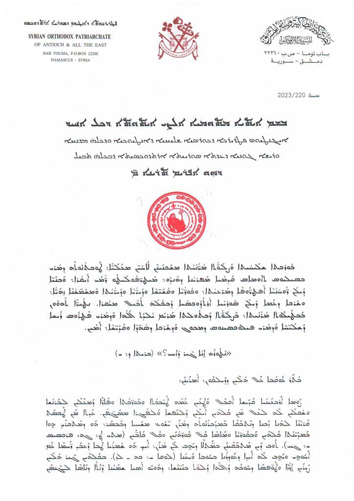 The Patriarchal Encyclical on the occasion of the Holy Lent 2023 in Syriac 24 Feb February 24, 2023 Nehrin Akyon