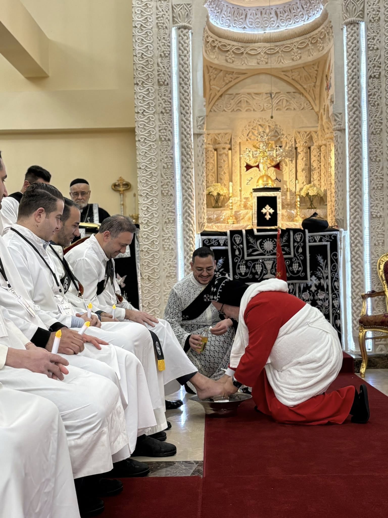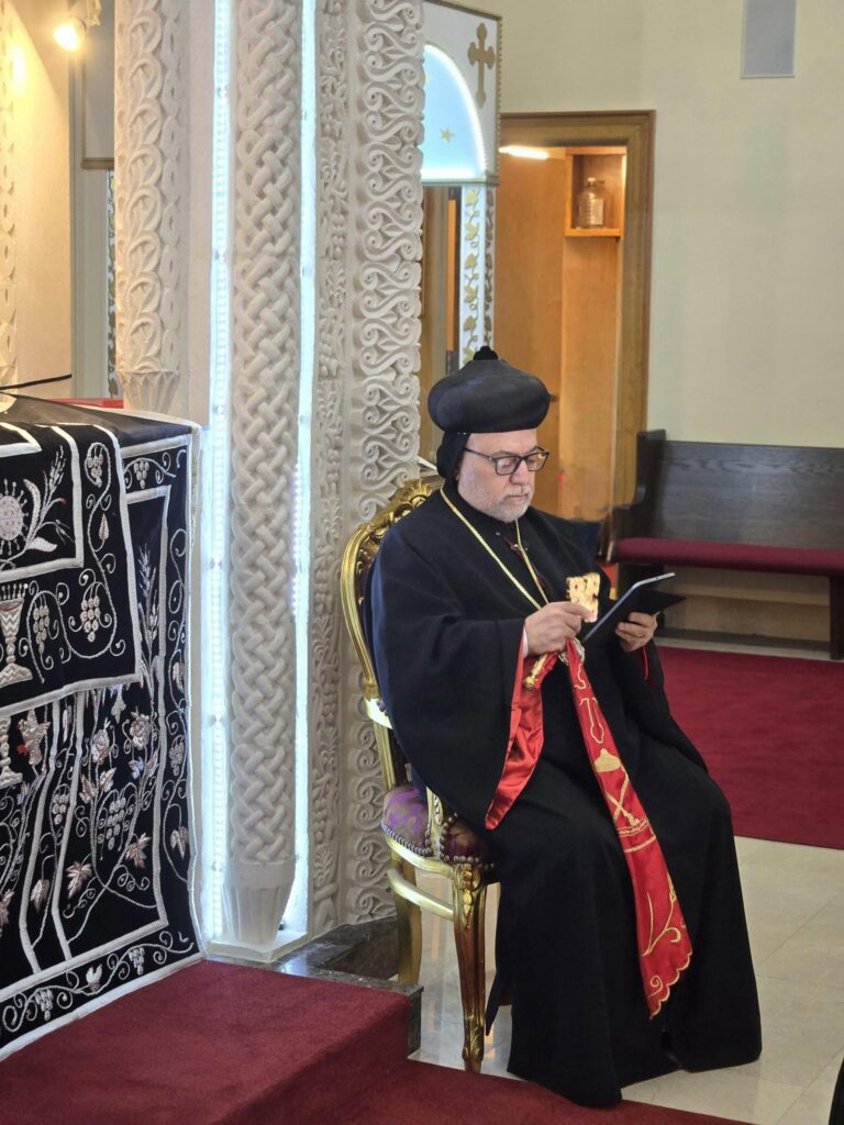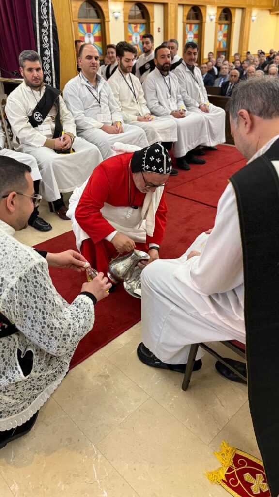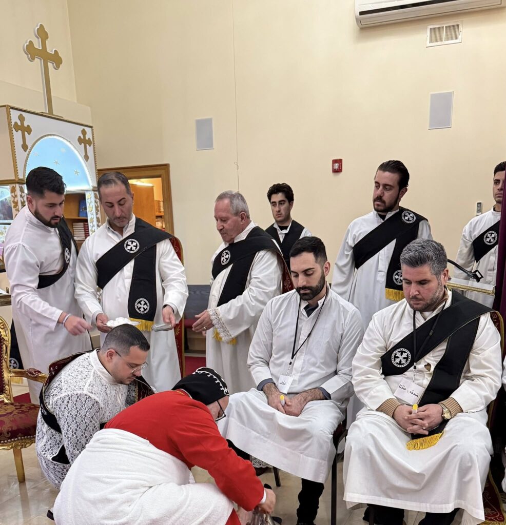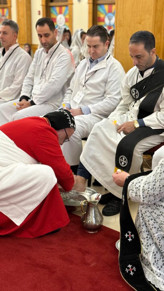 On Thursday, April 17, 2025, on the evening of Holy Thursday, His Eminence Mor Dionysius John Kawak celebrated the rite of the Washing of the Feet in the presence of Very Rev. Fr. Saliba Saliba, Very Rev. Fr. Aziz Hadodo, and Very Rev. Fr. Joseph Shabo, at Mor Gabriel Parish in Haworth, New Jersey. His Eminence washed the feet of twelve individuals, representing the twelve disciples.