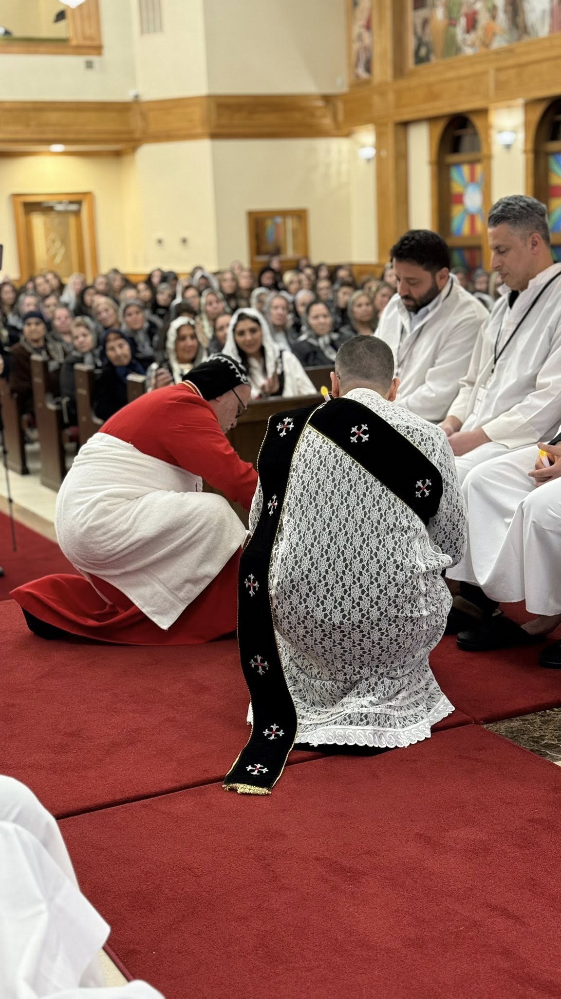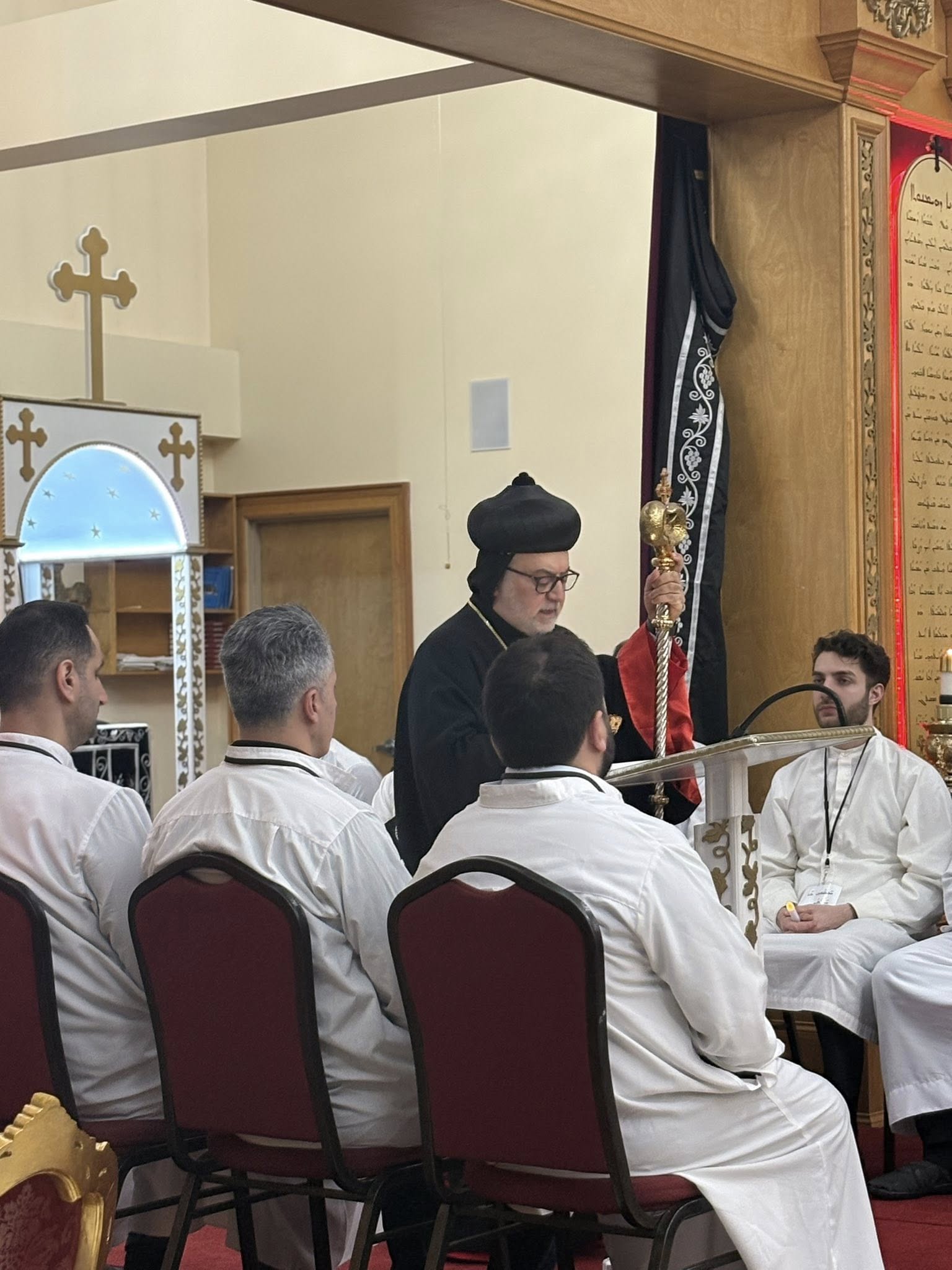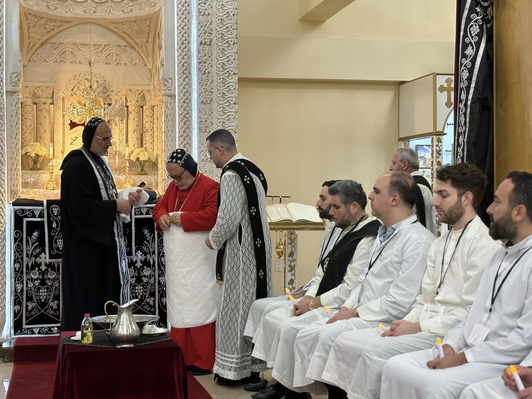 On Thursday, April 17, 2025, on the evening of Holy Thursday, His Eminence Mor Dionysius John Kawak celebrated the rite of the Washing of the Feet in the presence of Very Rev. Fr. Saliba Saliba, Very Rev. Fr. Aziz Hadodo, and Very Rev. Fr. Joseph Shabo, at Mor Gabriel Parish in Haworth, New Jersey. His Eminence washed the feet of twelve individuals, representing the twelve disciples.