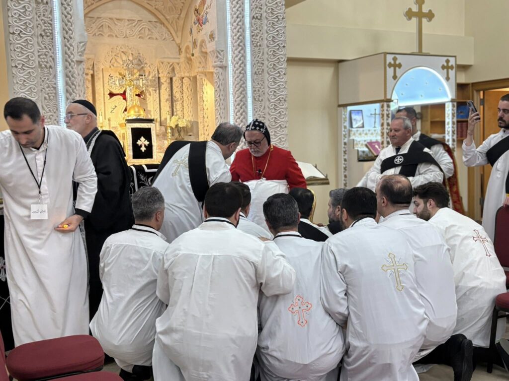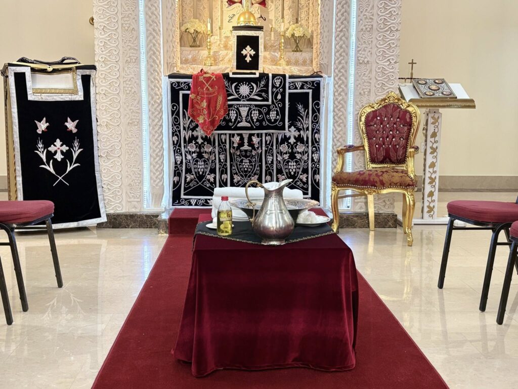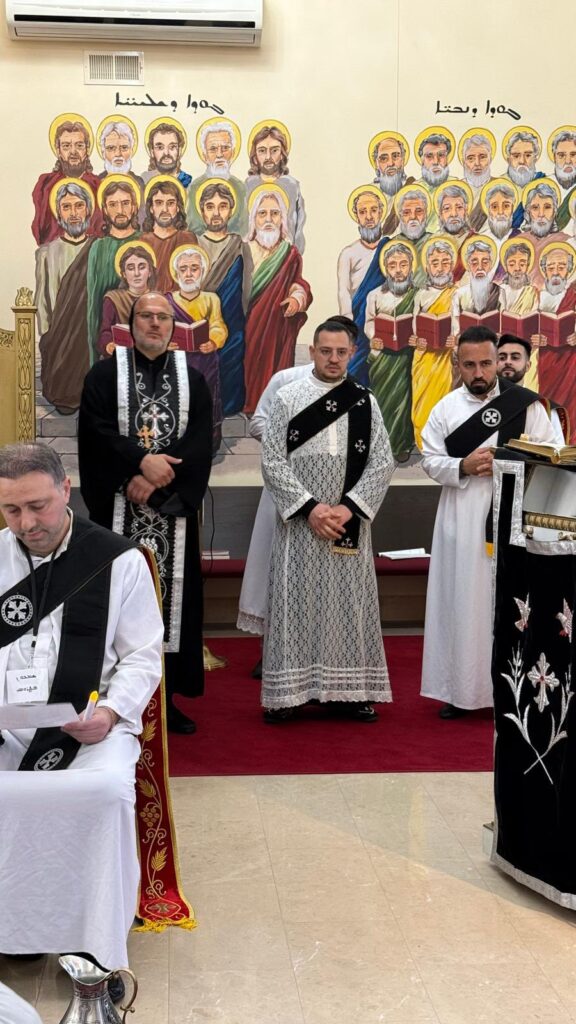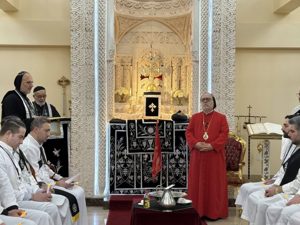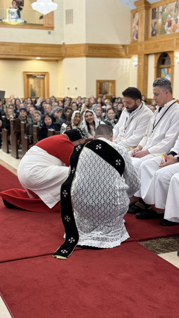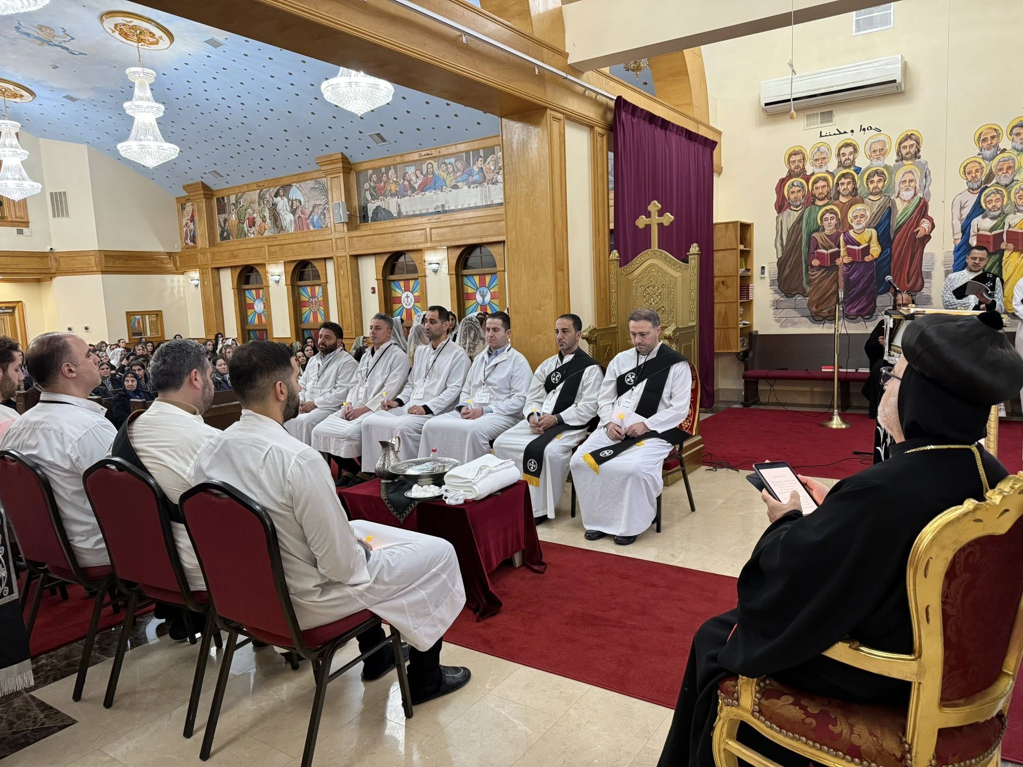 On Thursday, April 17, 2025, on the evening of Holy Thursday, His Eminence Mor Dionysius John Kawak celebrated the rite of the Washing of the Feet in the presence of Very Rev. Fr. Saliba Saliba, Very Rev. Fr. Aziz Hadodo, and Very Rev. Fr. Joseph Shabo, at Mor Gabriel Parish in Haworth, New Jersey. His Eminence washed the feet of twelve individuals, representing the twelve disciples.