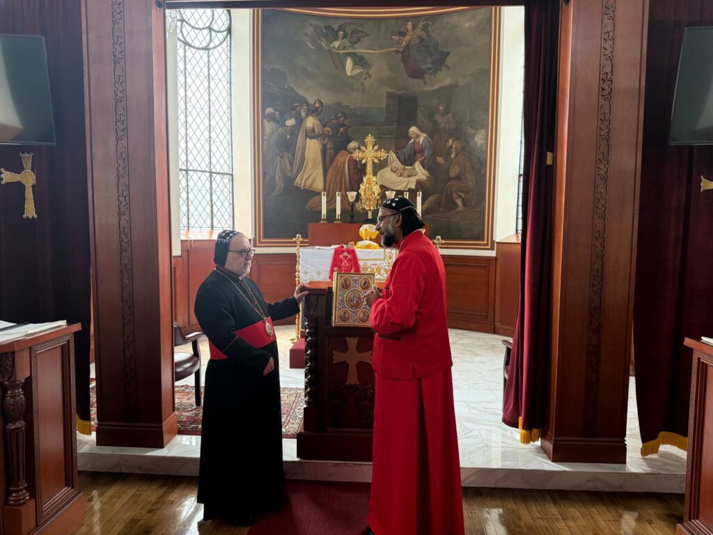 On Wednesday, July 2, 2025, His Eminence Mor Dionysius John Kawak, Archbishop and Patriarchal Vicar of the Eastern United States, in the presence of Very Rev. Raban Saiba Er, warmly received His Eminence Mor Theophilos Kuriakose, Metropolitan and Patriarchal Vicar of Europe, and His Eminence Mor Titus Yeldho, Archbishop of the Malankara Archdiocese in North America, at the Syriac Orthodox Archdiocese Headquarters in Paramus, New Jersey.