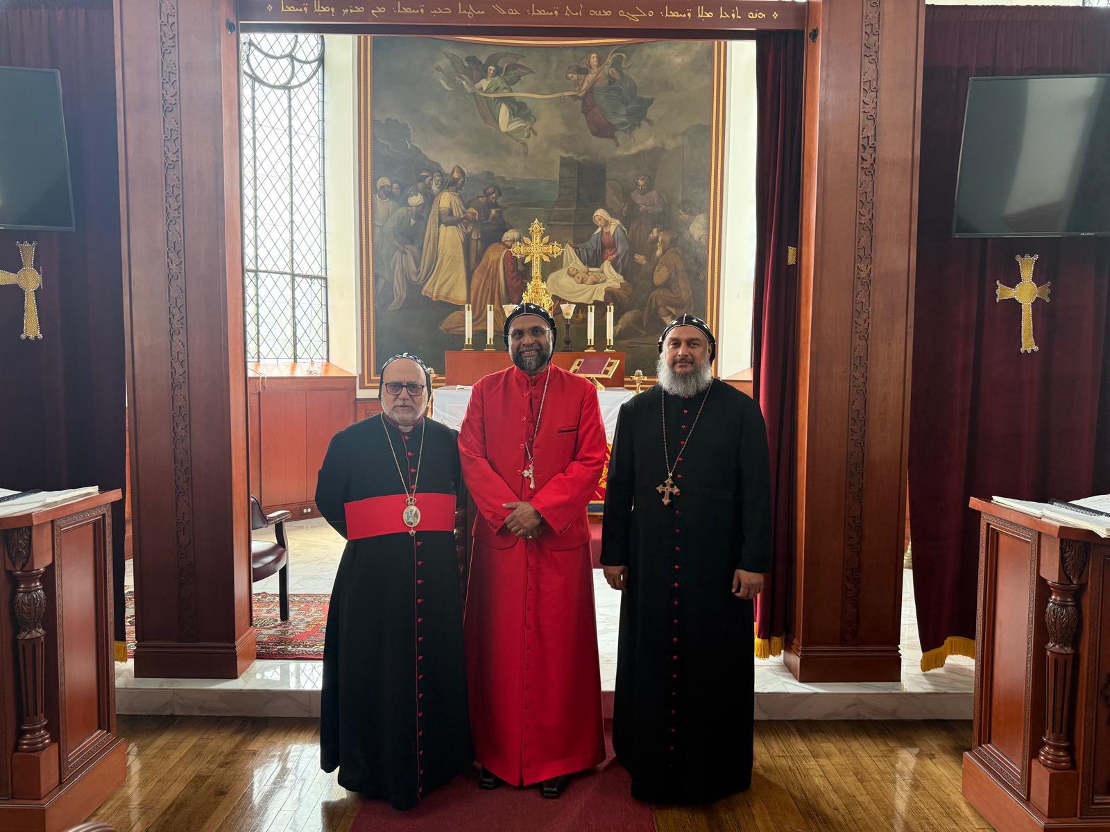 On Wednesday, July 2, 2025, His Eminence Mor Dionysius John Kawak, Archbishop and Patriarchal Vicar of the Eastern United States, in the presence of Very Rev. Raban Saiba Er, warmly received His Eminence Mor Theophilos Kuriakose, Metropolitan and Patriarchal Vicar of Europe, and His Eminence Mor Titus Yeldho, Archbishop of the Malankara Archdiocese in North America, at the Syriac Orthodox Archdiocese Headquarters in Paramus, New Jersey.