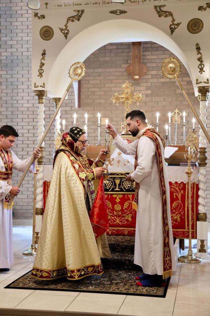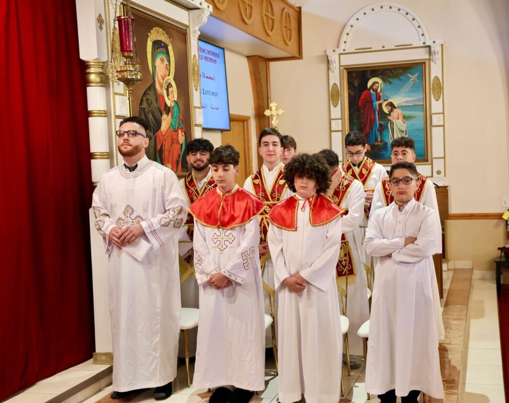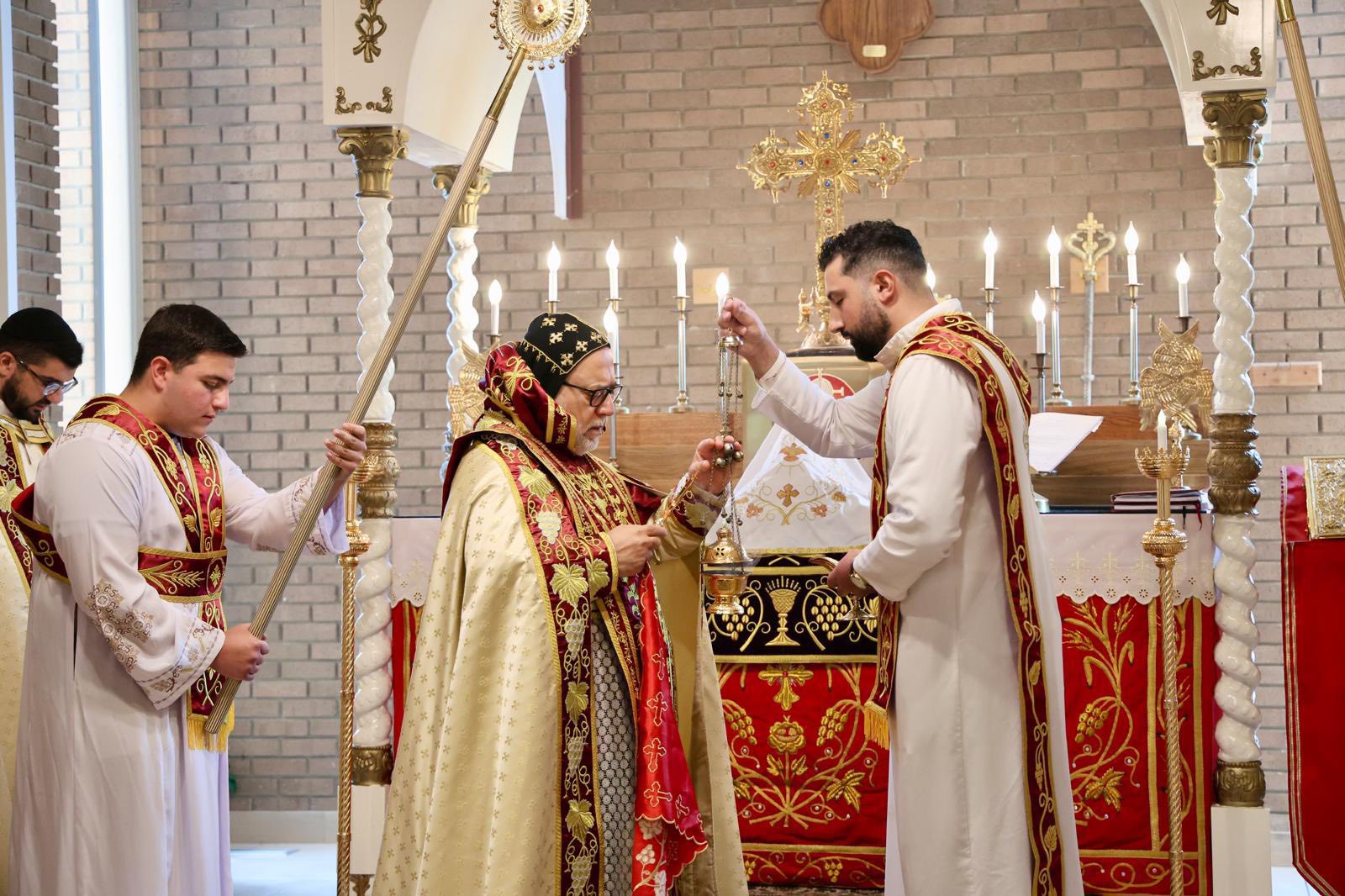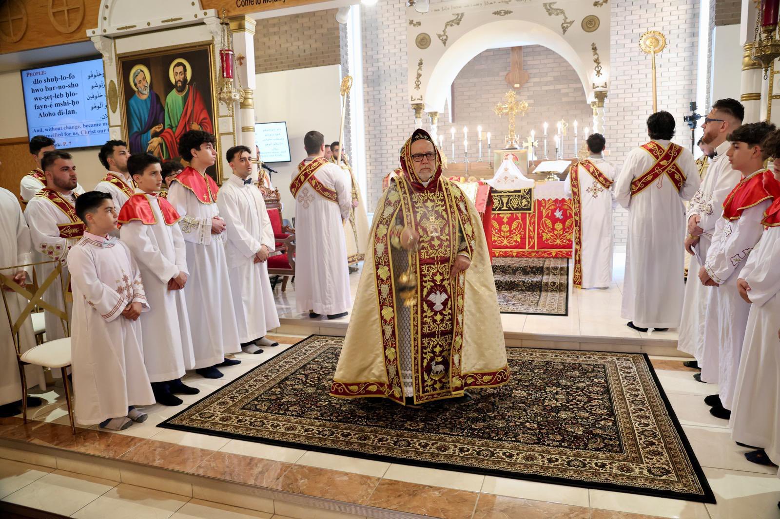 On Sunday, June 29, 2025, His Eminence Archbishop Mor Dionysius John Kawak celebrated the Holy Qurobo at Sts. Peter & Paul Syriac Orthodox Church in Southfield, Michigan. He was assisted by the parish priest, Rev. Fr. Imad Al Banna, and the youth priest, Rev. Fr. Joseph Shammas.