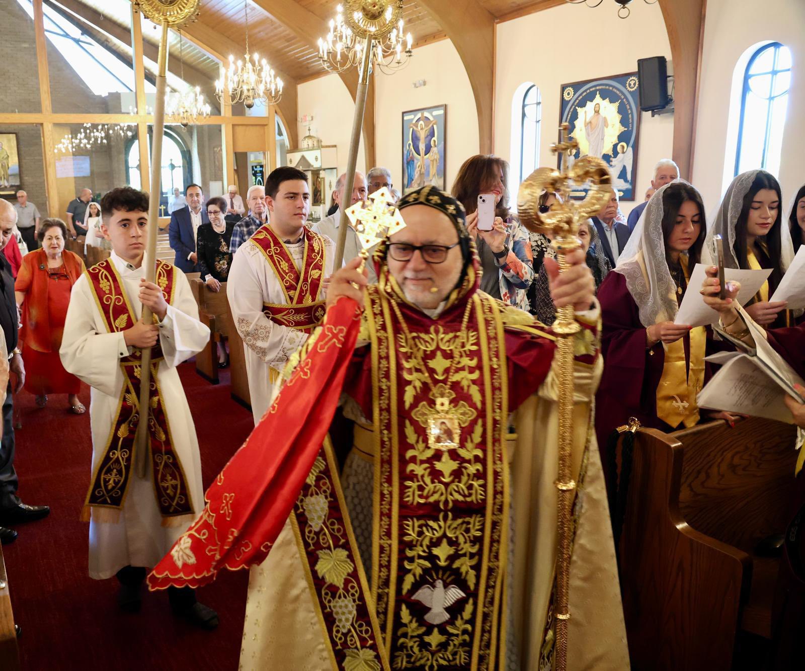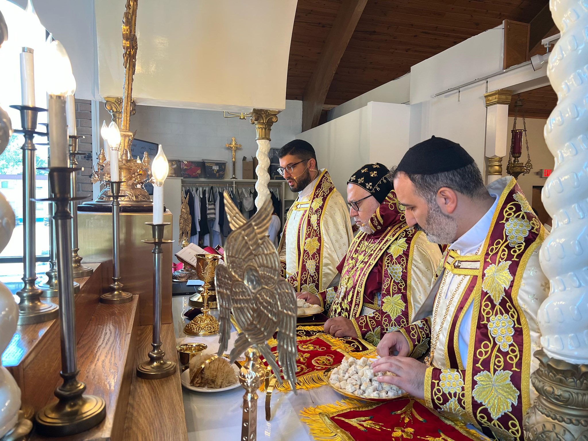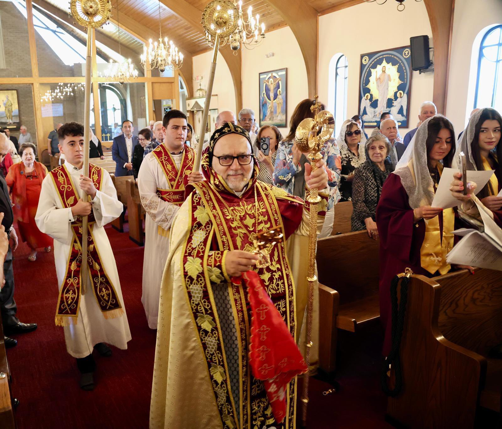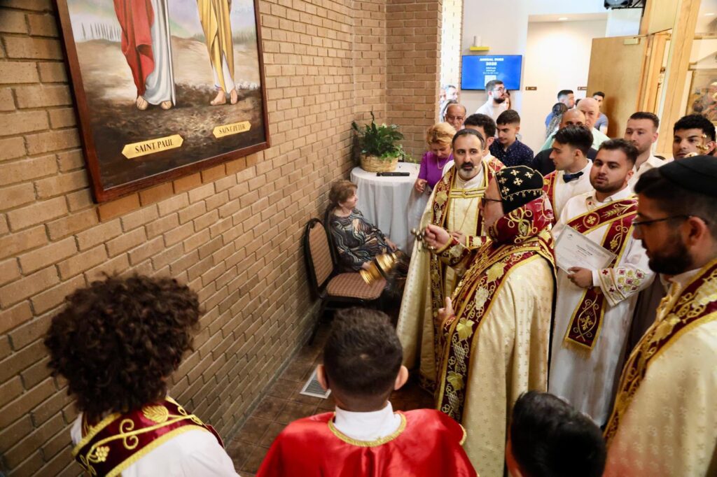 On Sunday, June 29, 2025, His Eminence Archbishop Mor Dionysius John Kawak celebrated the Holy Qurobo at Sts. Peter & Paul Syriac Orthodox Church in Southfield, Michigan. He was assisted by the parish priest, Rev. Fr. Imad Al Banna, and the youth priest, Rev. Fr. Joseph Shammas.