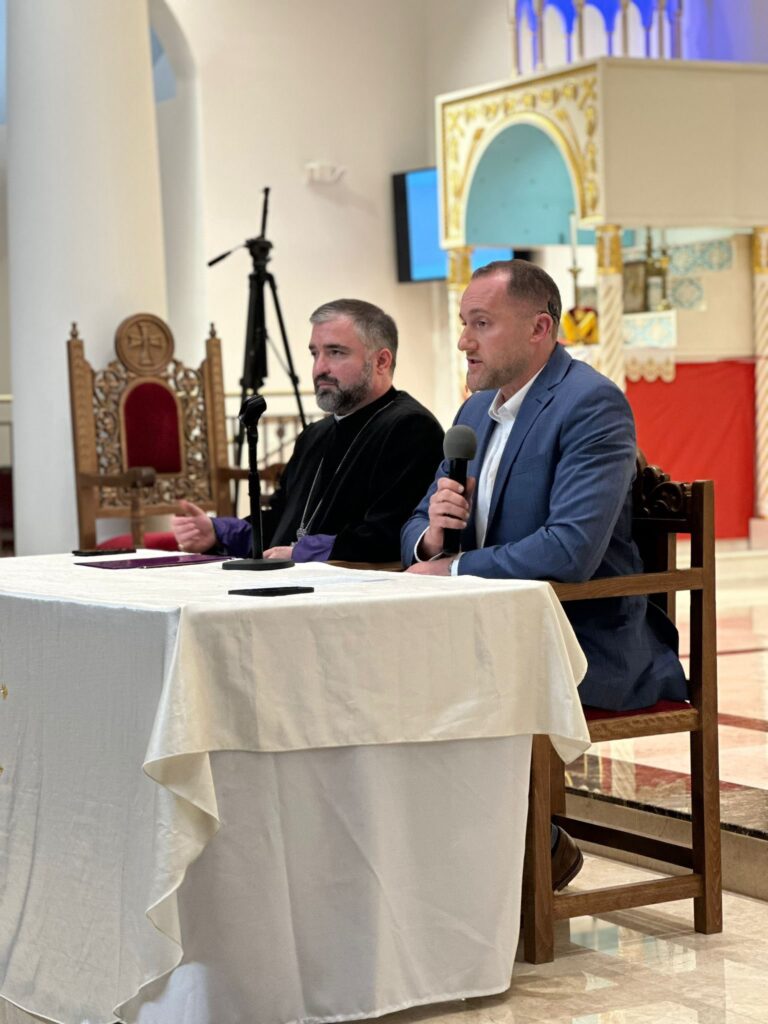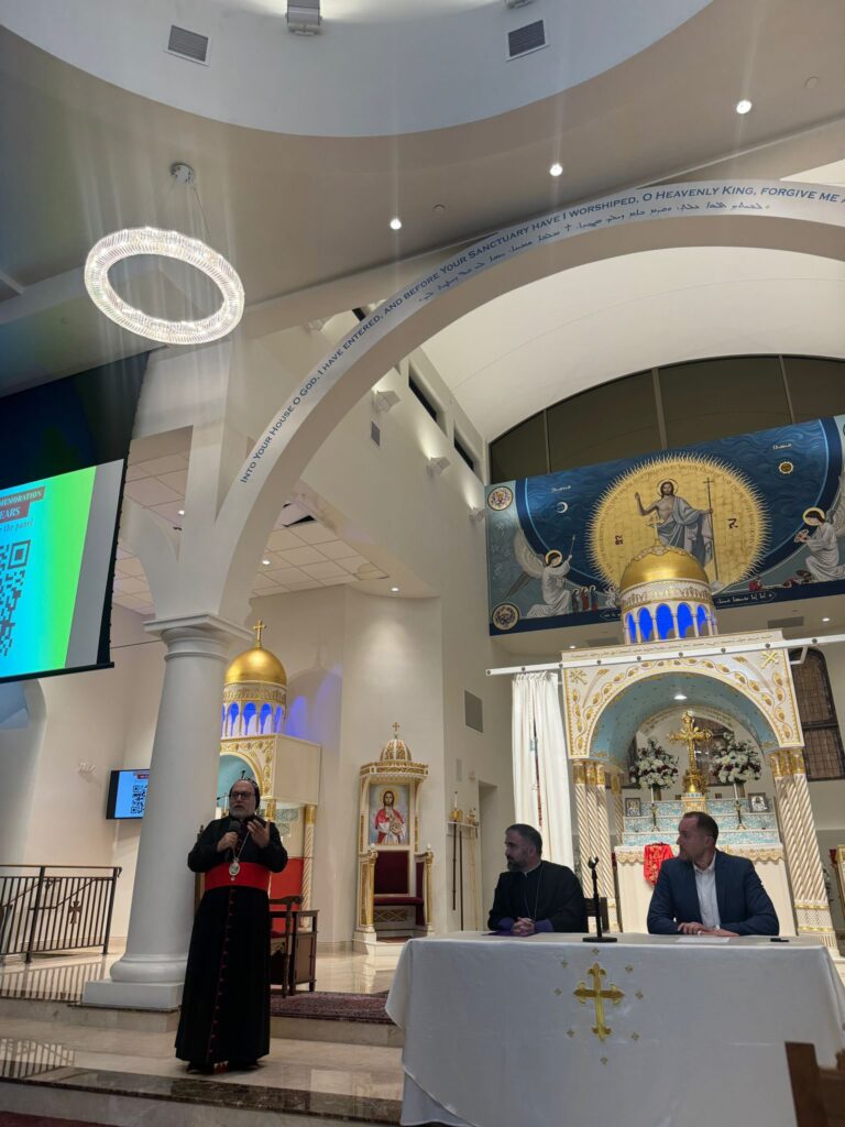 At the invitation of His Eminence Mor Dionysius John Kawak and the Archdiocesan Education Committee, His Grace Bishop Mesrop, of the Armenian Apostolic Church presented a paper titled “1915 Genocide: Martyrs for Christ”, followed by Mr. Richard Ghazal, Executive Director of In Defense of Christians who spoke about “1915 Sayfo & Christian Persecution Today”. Following both presentations, Rev. Fr. Joseph Shammas moderated a discussion with the panelists and faithful regarding the two presentations.