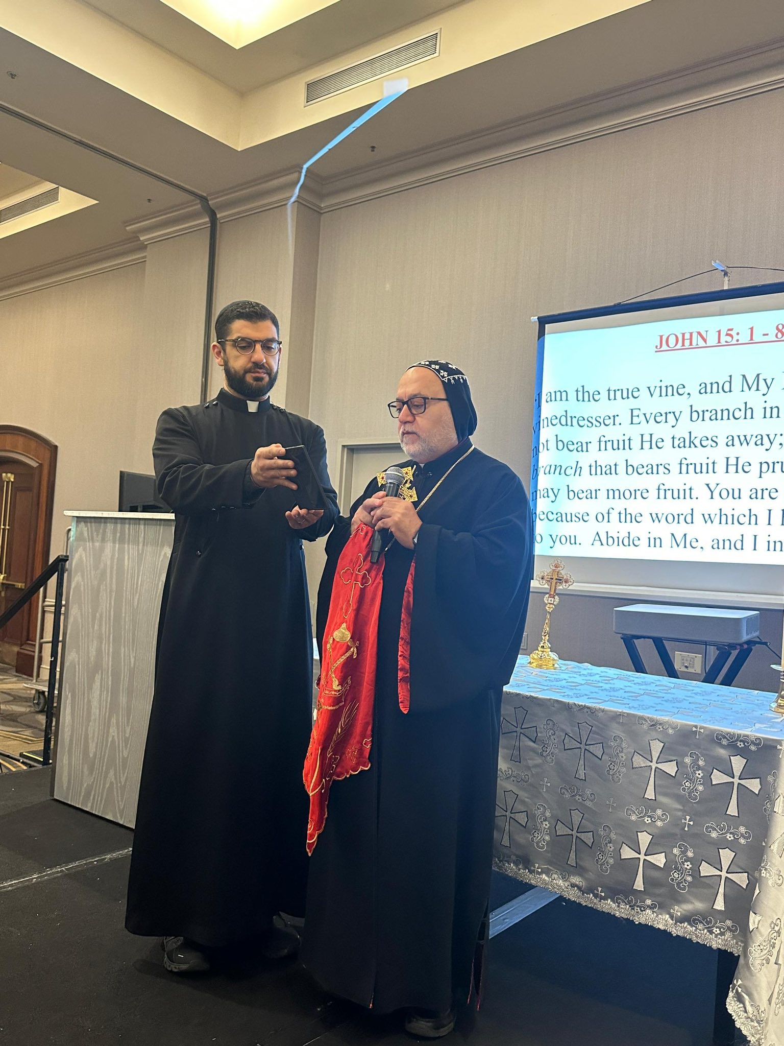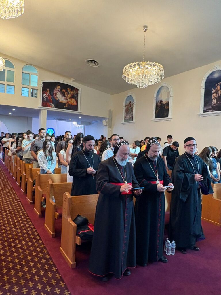 On Sunday, July 13th, Their Eminences,Mor Clemis Eugene Kaplan, Mor Dionysius John Kawak, and Mor Andrawos Bahhi, celebrated the Holy Liturgy in the presence of V. Rev. Fr. Boutrous Rouboz, V. Rev. Fr. Saliba Kassis, V. Rev. Fr. Anton Sabha, Rev. Fr. Gabriel Hanna, Rev. Fr. Tony Yacoub, V. Rev. Fr. Saliba Er, and Rev. Fr. Joseph Shammas, marking the conclusion of the gathering.