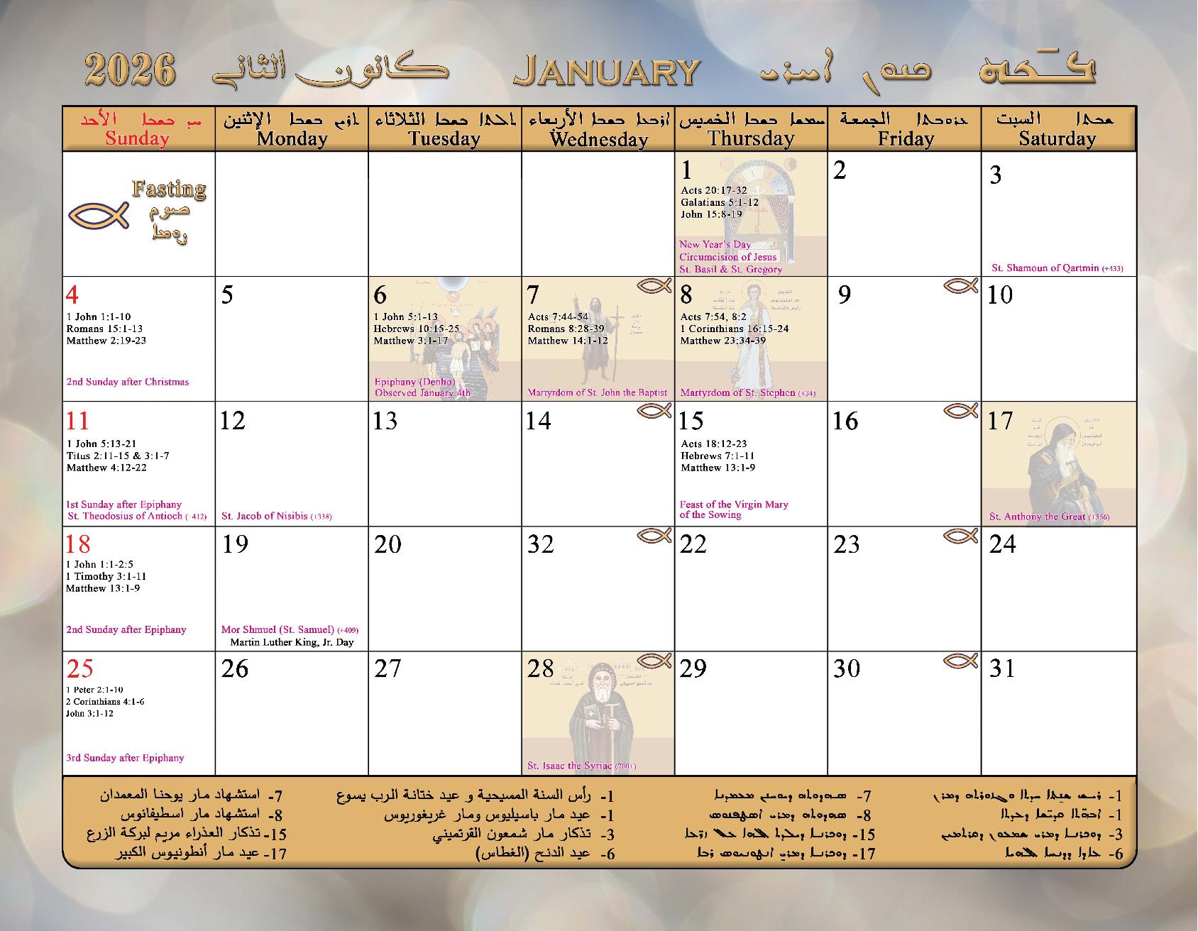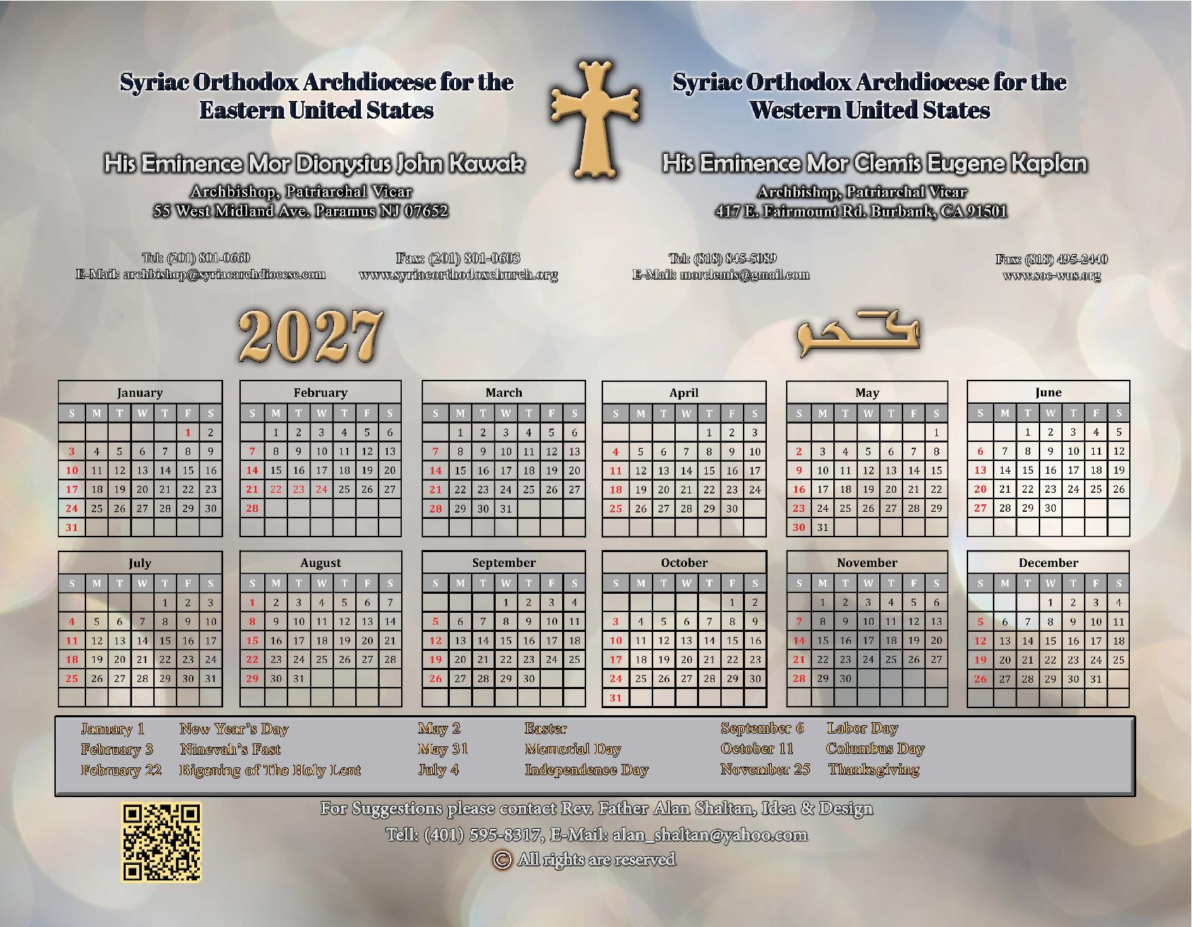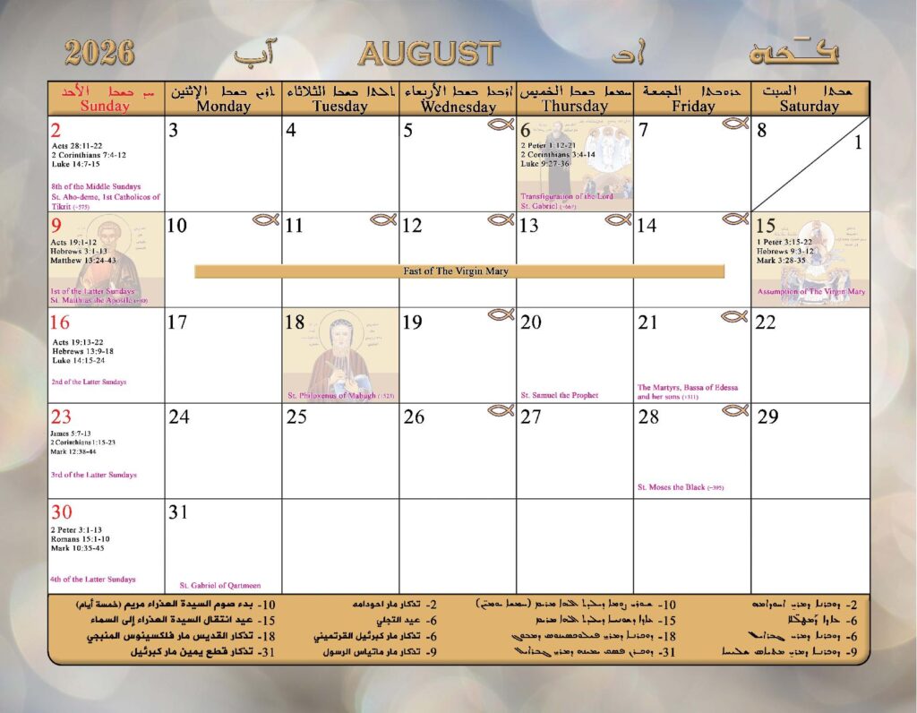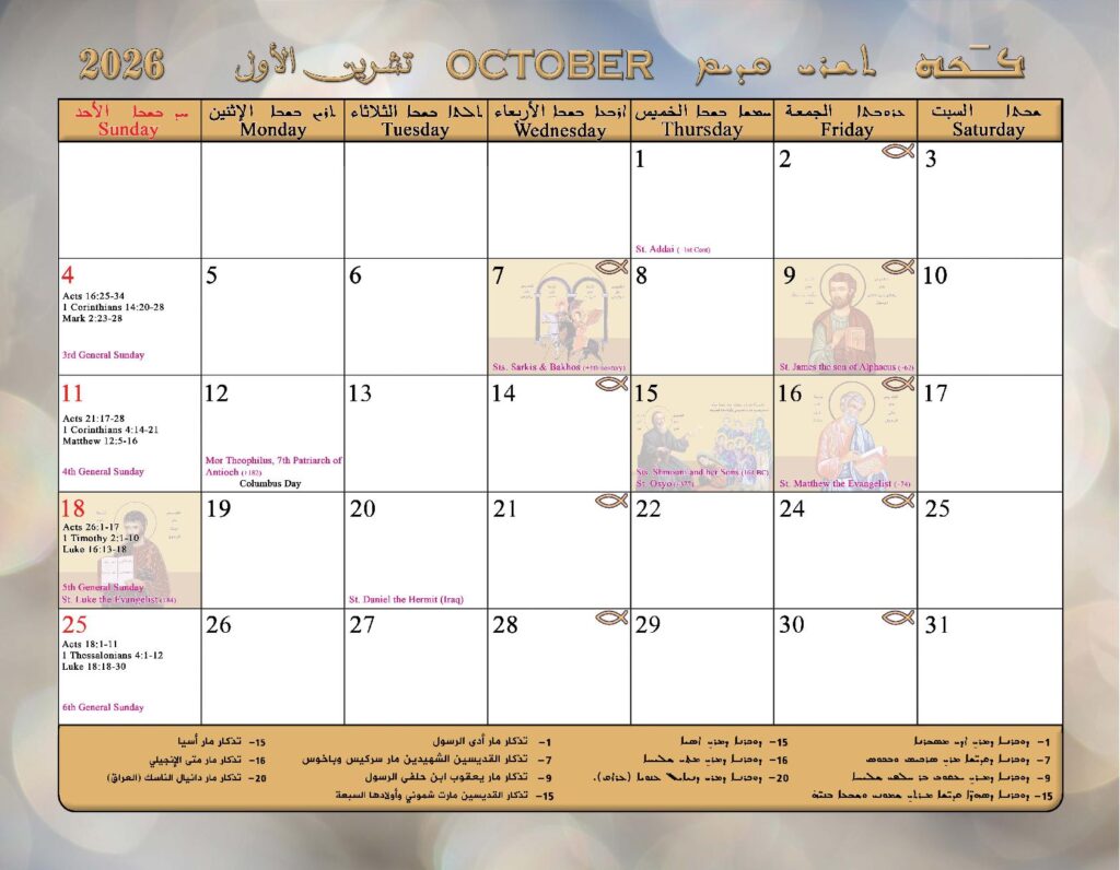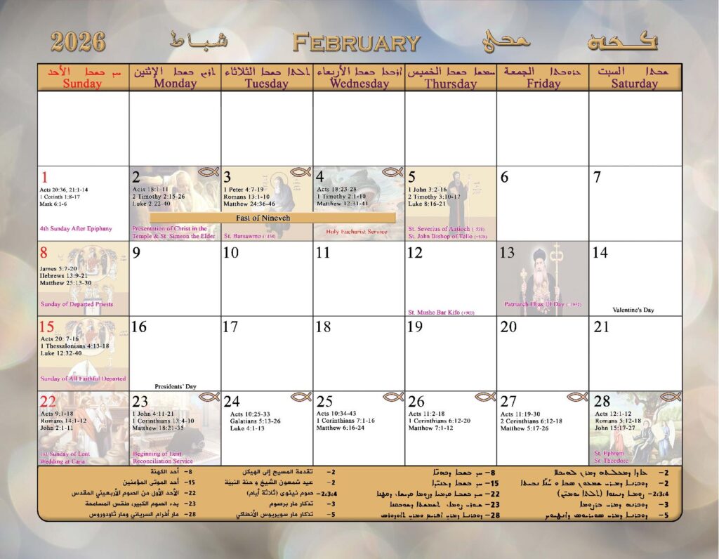 2026 Calendar of the Syriac Orthodox Church of Antioch in the USA