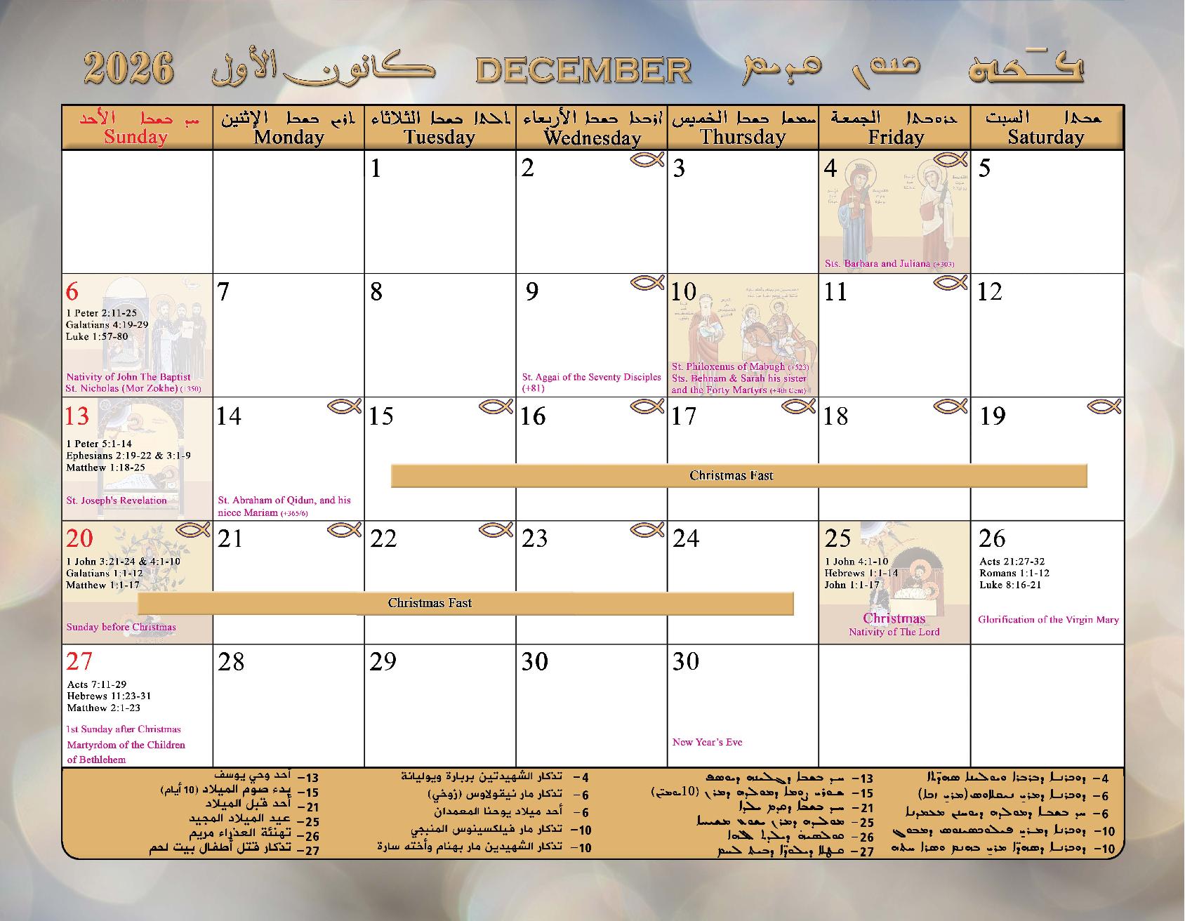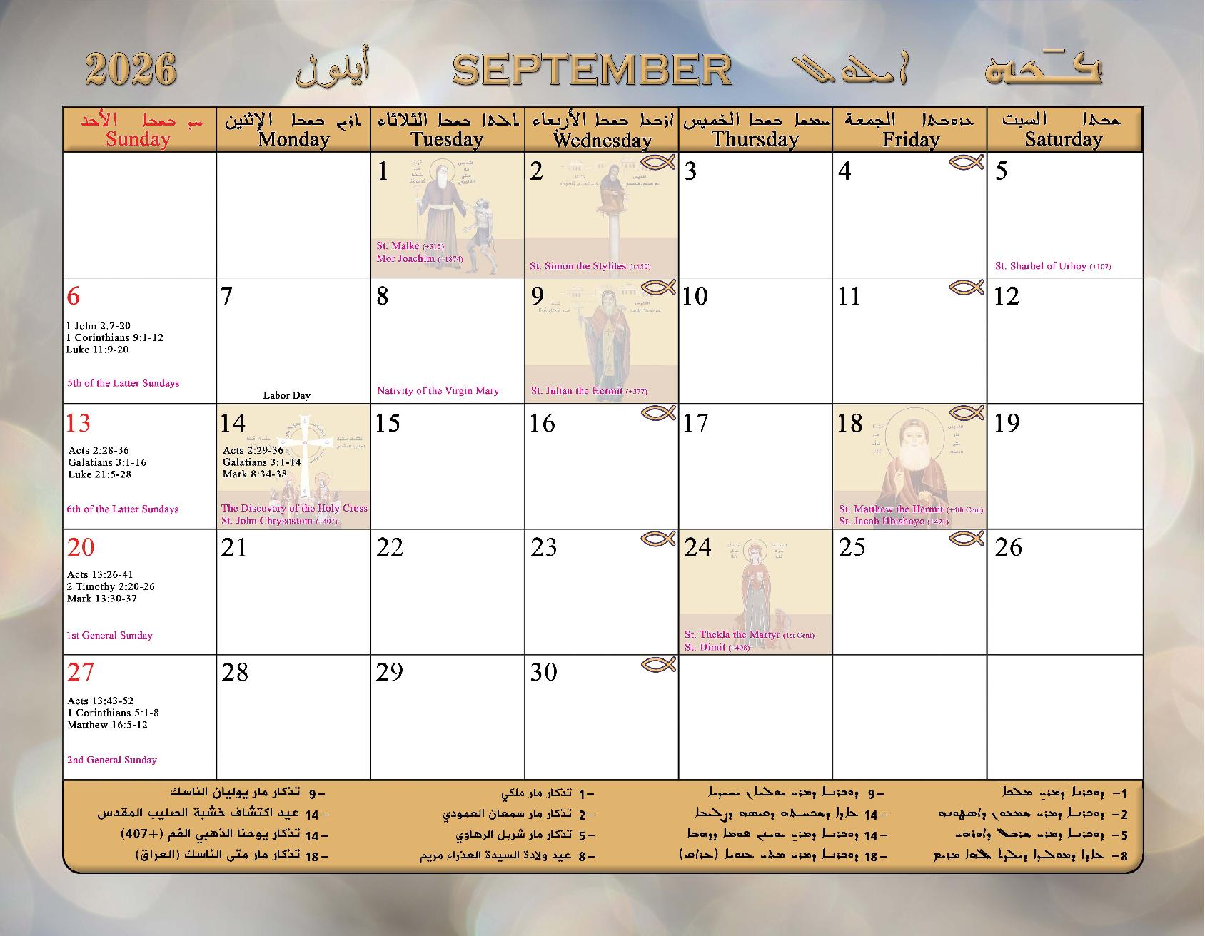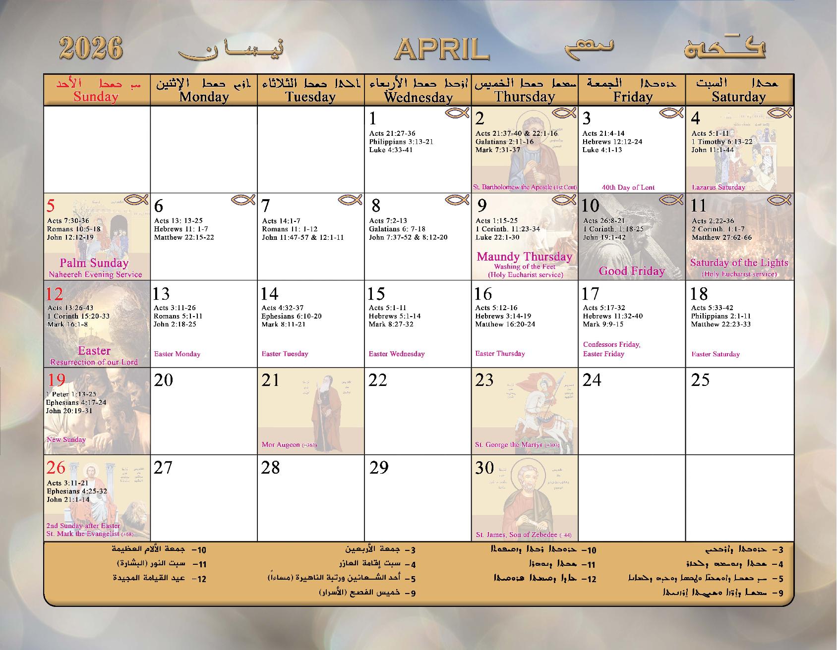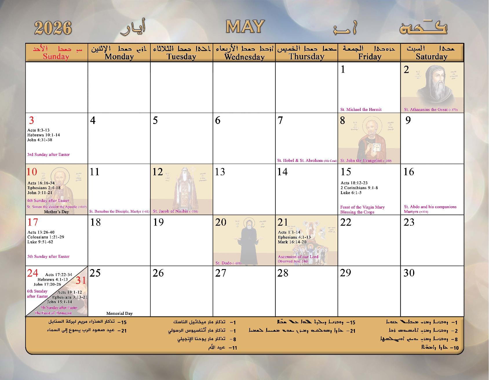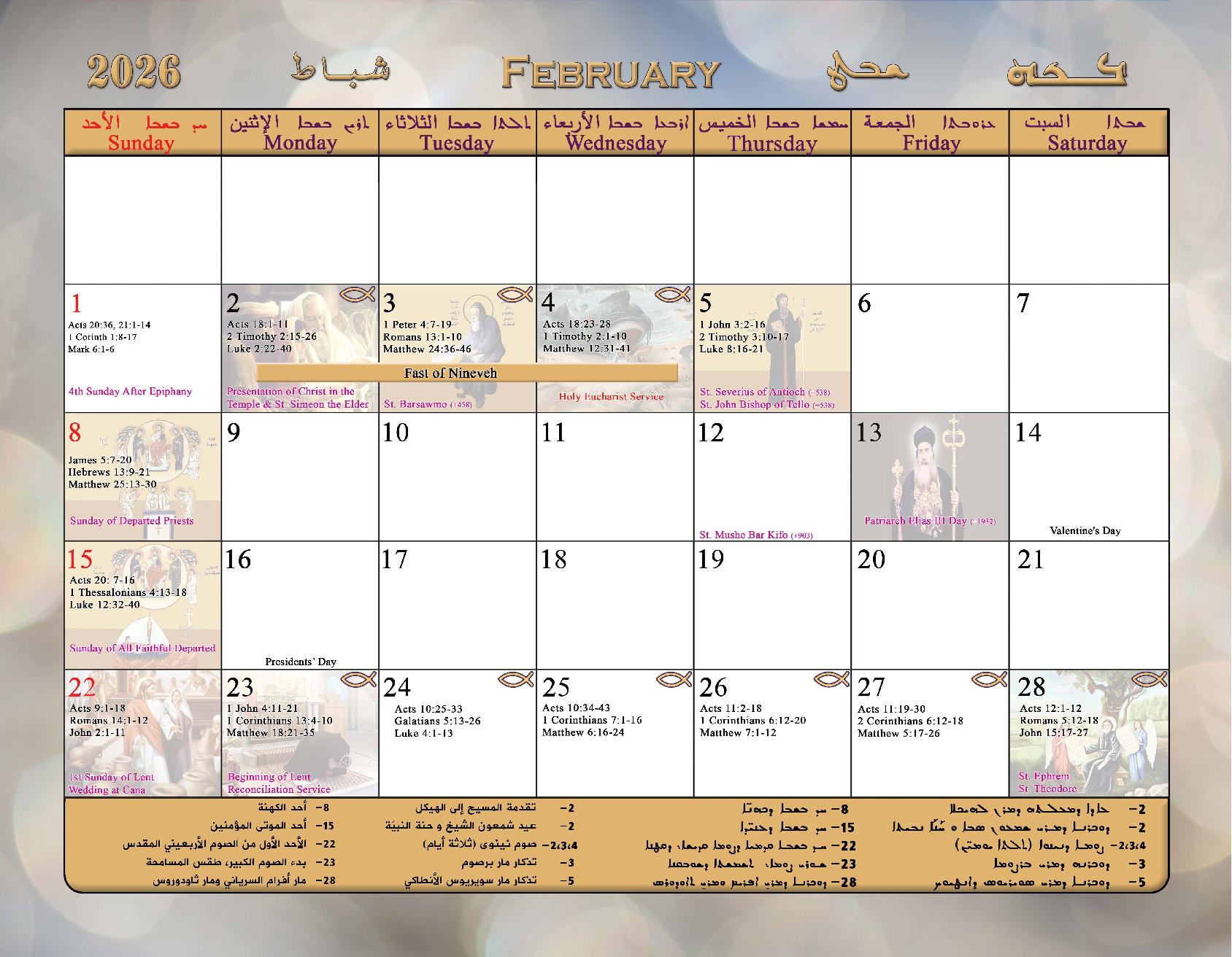 2026 Calendar of the Syriac Orthodox Church of Antioch in the USA
