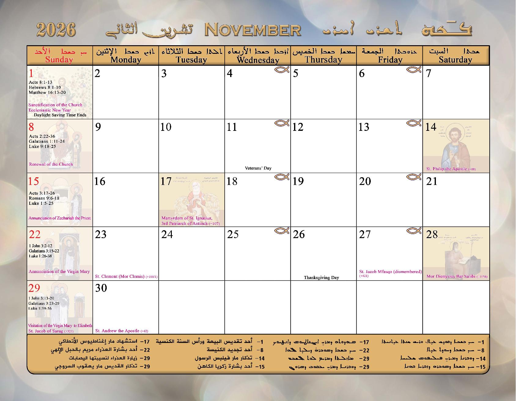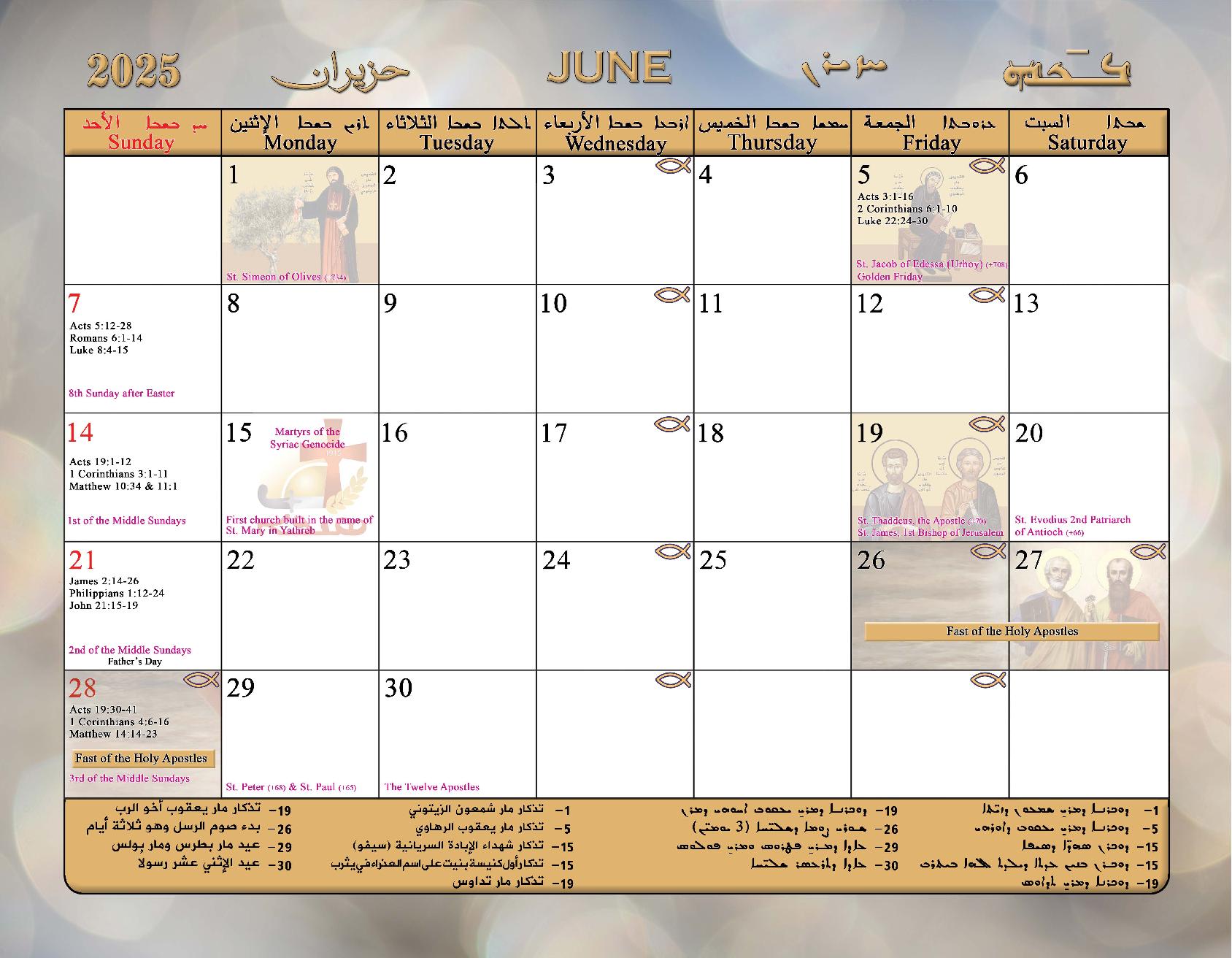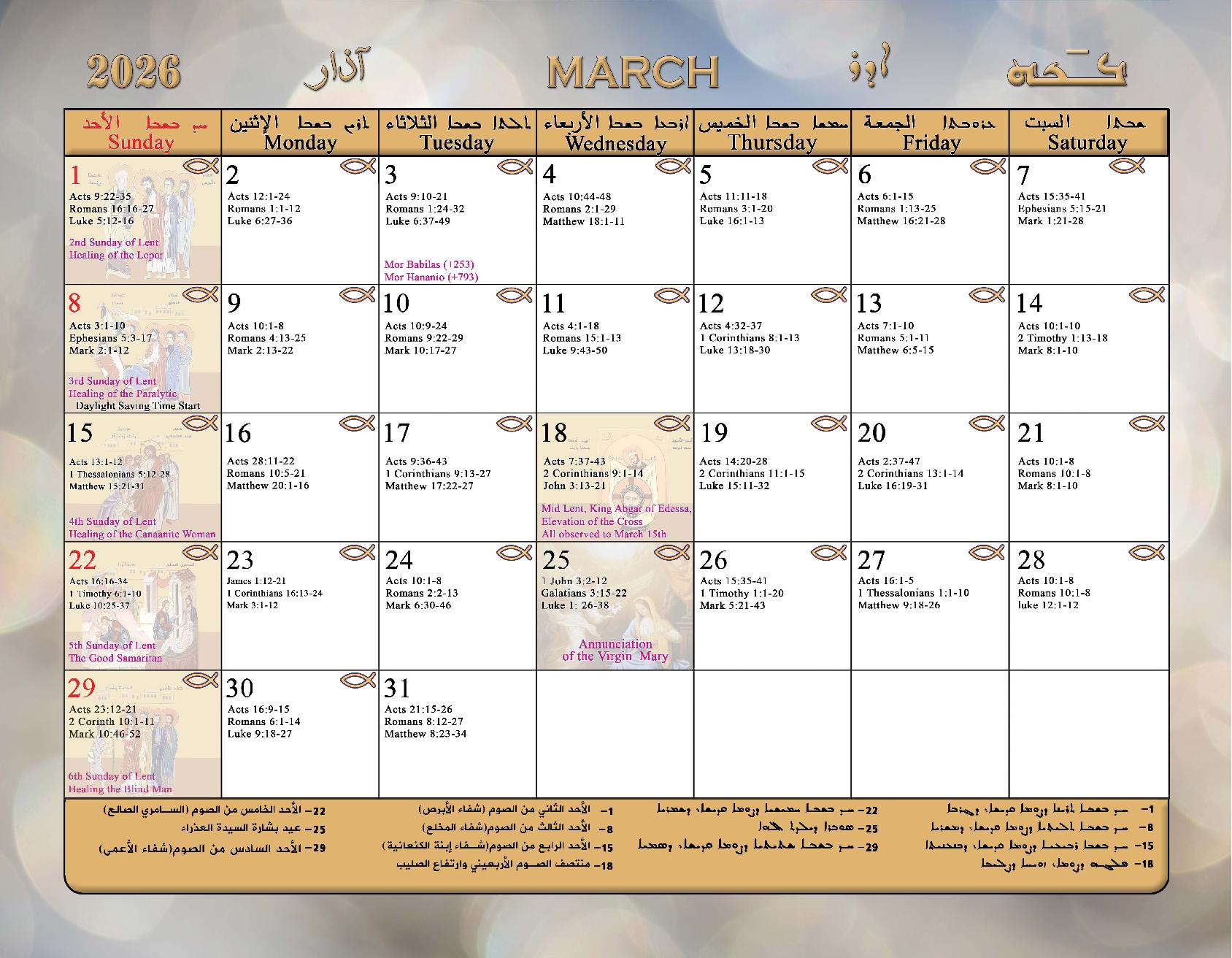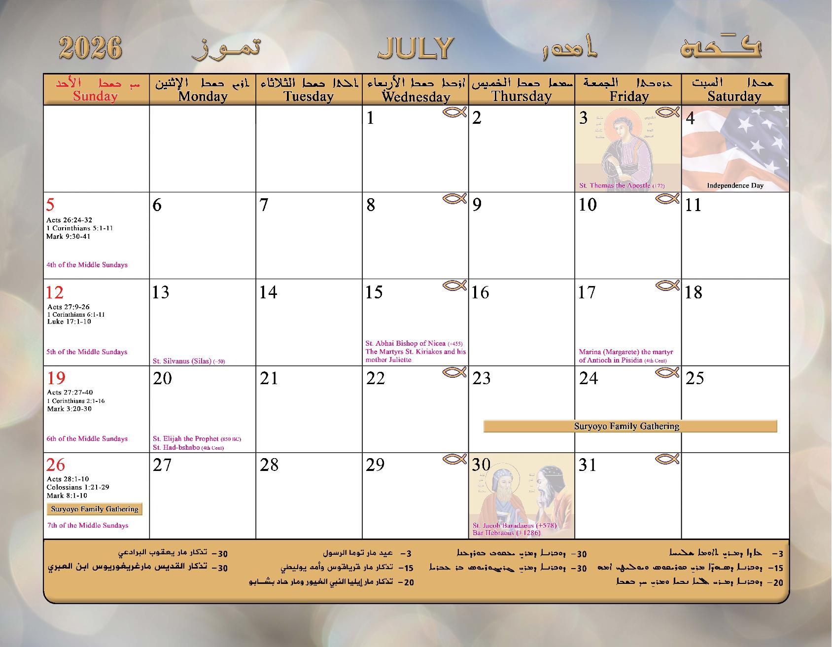 2026 Calendar of the Syriac Orthodox Church of Antioch in the USA
