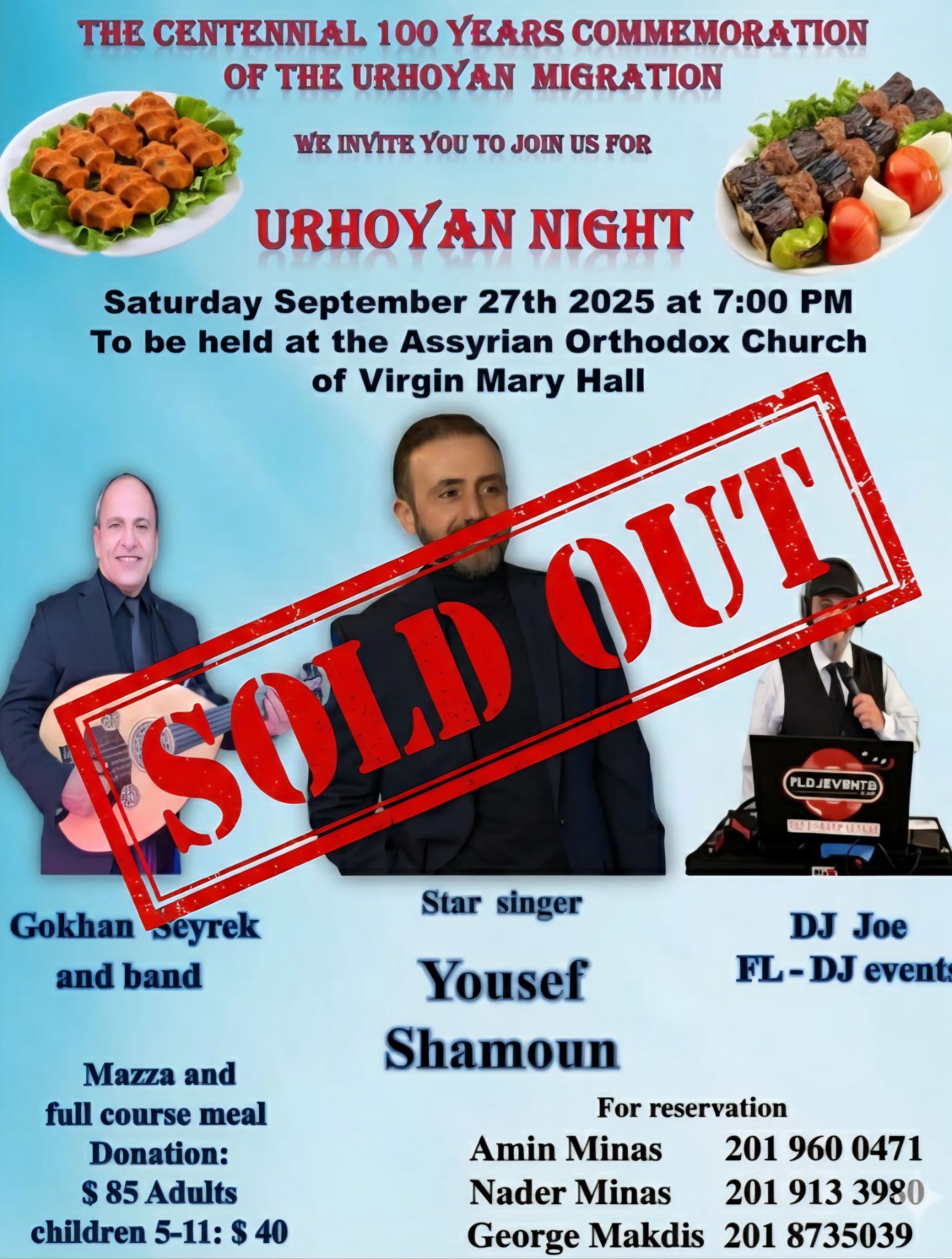 We welcome everyone to join us in remembering our ancestors and to celebrate the centennial commemoration of the Urhoyian immigration from Urfa to Aleppo.